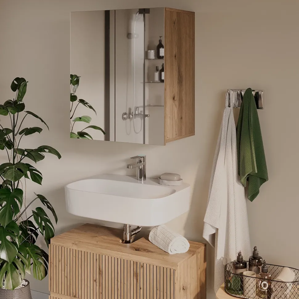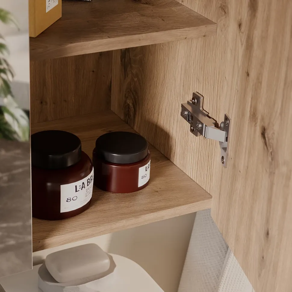 - Der Badspiegelschrank bringt mit seinem minimalistischen Japandi-Stil frischen Schwung ins Badezimmer. Genießen Sie die Kombination aus Funktionalität und Ästhetik, die für Ordnung und Eleganz sorgt.