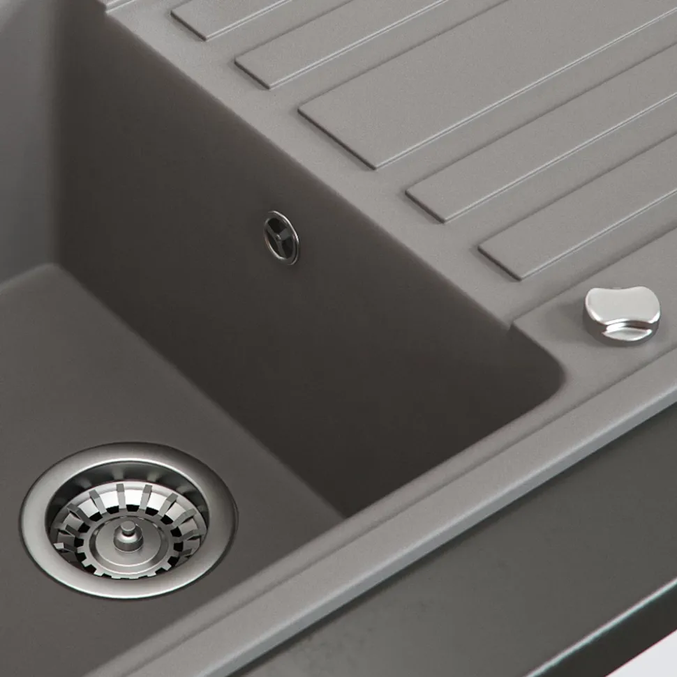 - Die Spüle aus Granit mit abtropfflügel ist widerstandsfähig gegen Chemikalien und stoßsicher, ideal für eine langlebige und robuste Küchenausstattung.