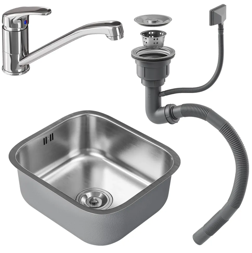 - Die elegante Spüle aus Edelstahl bereichert jede moderne Küche und überzeugt durch ihr pflegeleichtes Design. Mit dem praktischen Set aus Armatur, Zulauf und Ablauf ist sie der ideale Küchenhelfer.