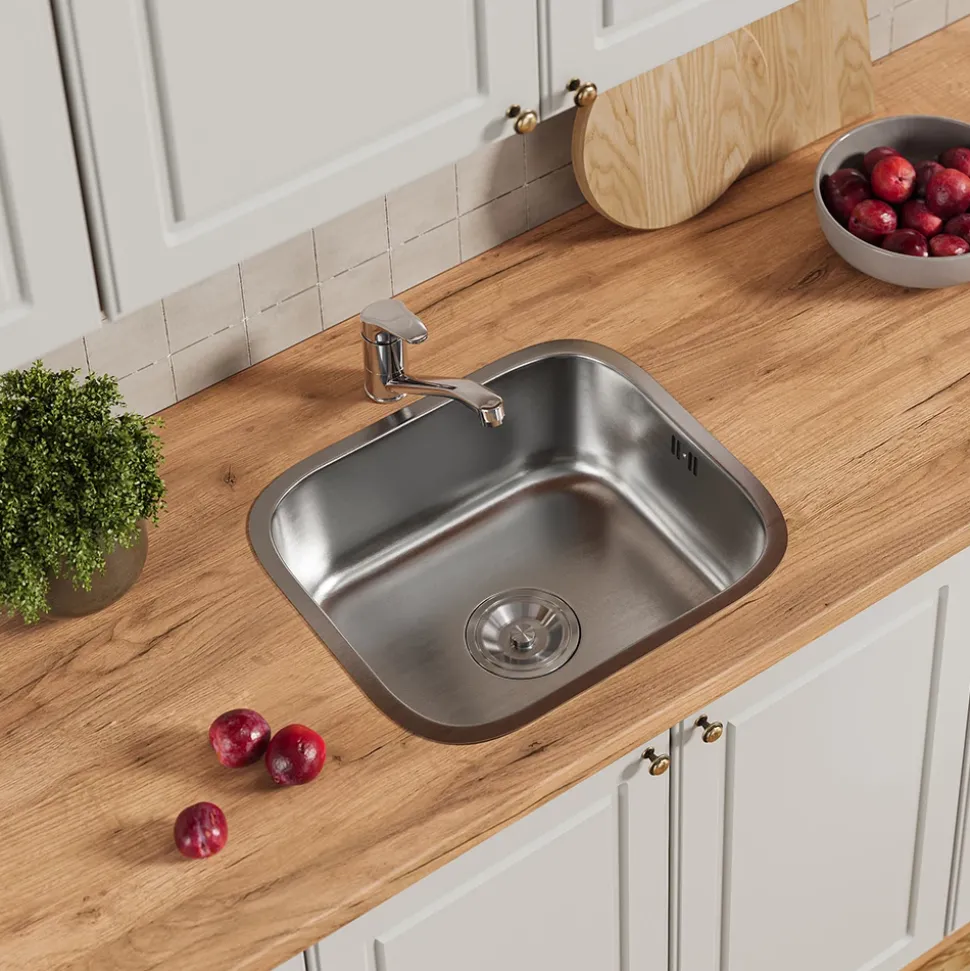 - Erleben Sie die zeitlose Eleganz einer Edelstahlspüle, die sich nahtlos in Ihre Küche integriert. Ihr robustes Design gewährleistet Langlebigkeit und Pflegeleichtigkeit für den täglichen Einsatz.