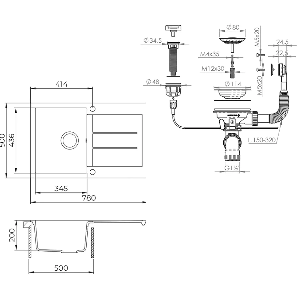 - Diese Einbauspüle besticht durch ihre robuste Konstruktion und ihr zeitloses Design. Mit ihr wird das Geschirrspülen zu einem mühelosen und effizienten Erlebnis in Ihrer Küche.