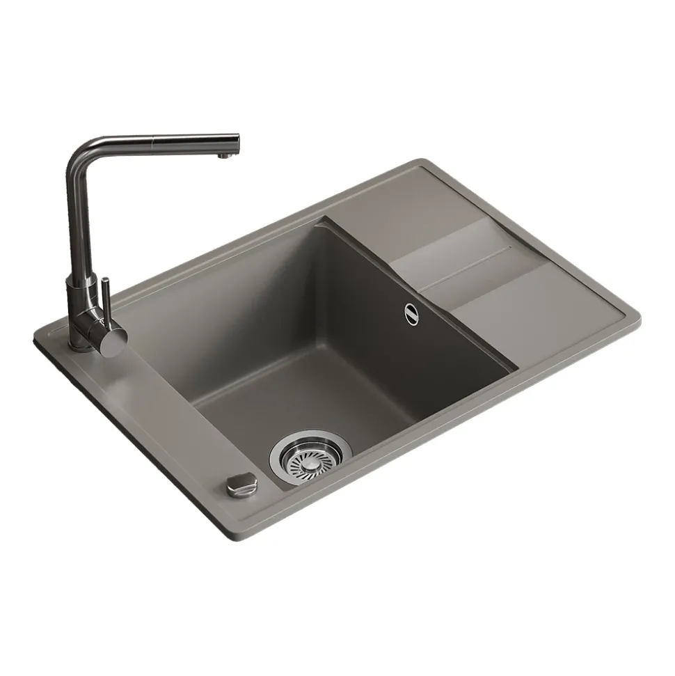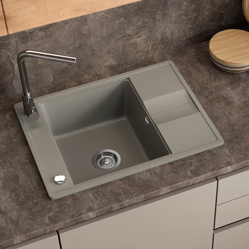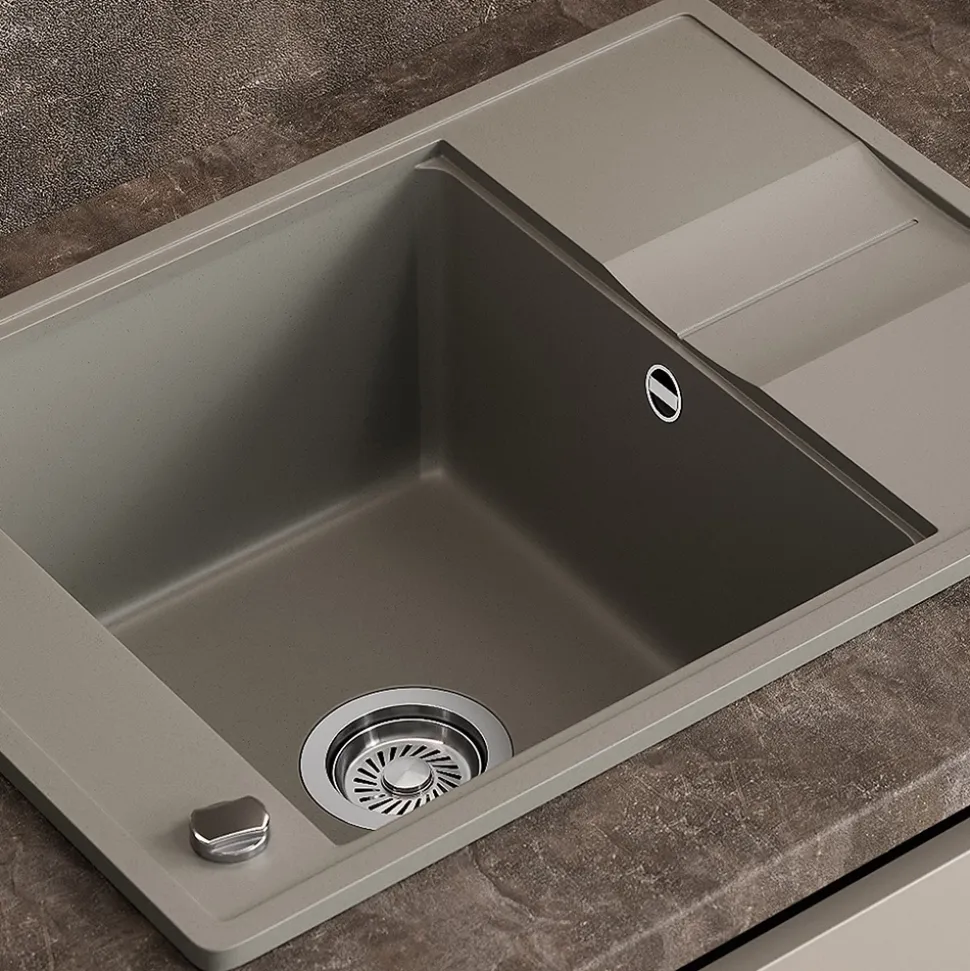 - MATERIAL: Das Spülbecken besteht zu 80 % aus Quarz und 20 % aus speziellen Harzen, was eine pflegeleichte, robuste und langlebige Oberfläche gewährleistet.