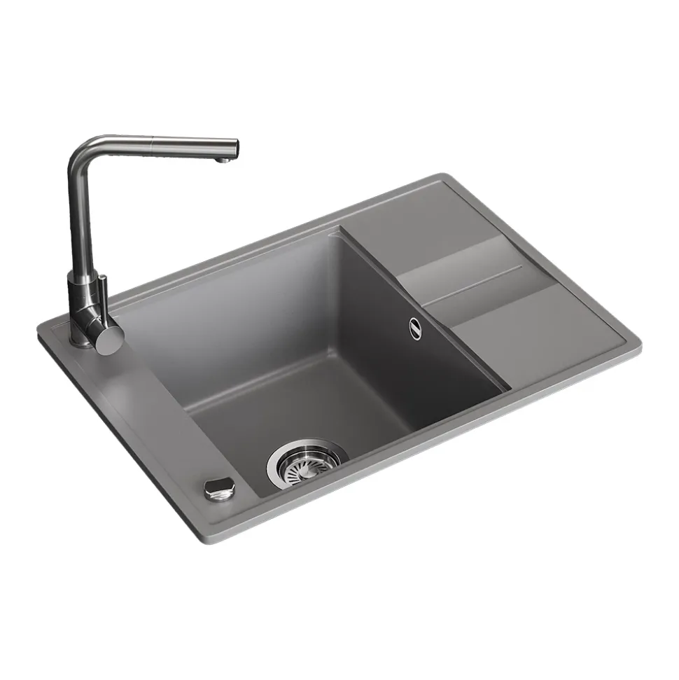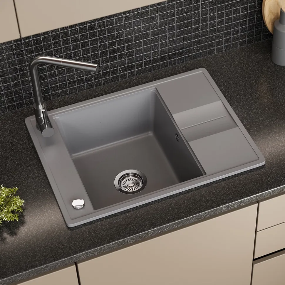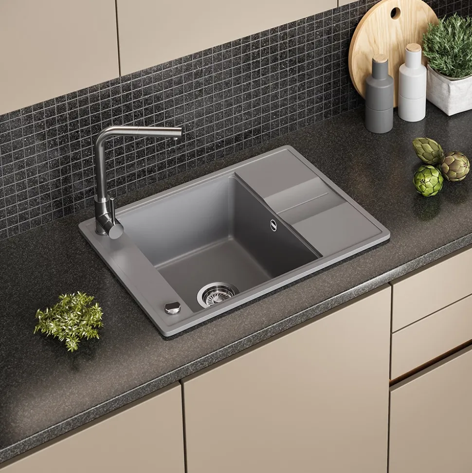 - MATERIAL: Das Spülbecken besteht zu 80 % aus Quarz und 20 % aus speziellen Harzen, was eine pflegeleichte, robuste und langlebige Oberfläche gewährleistet.