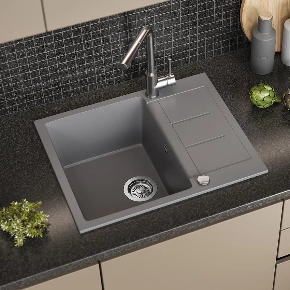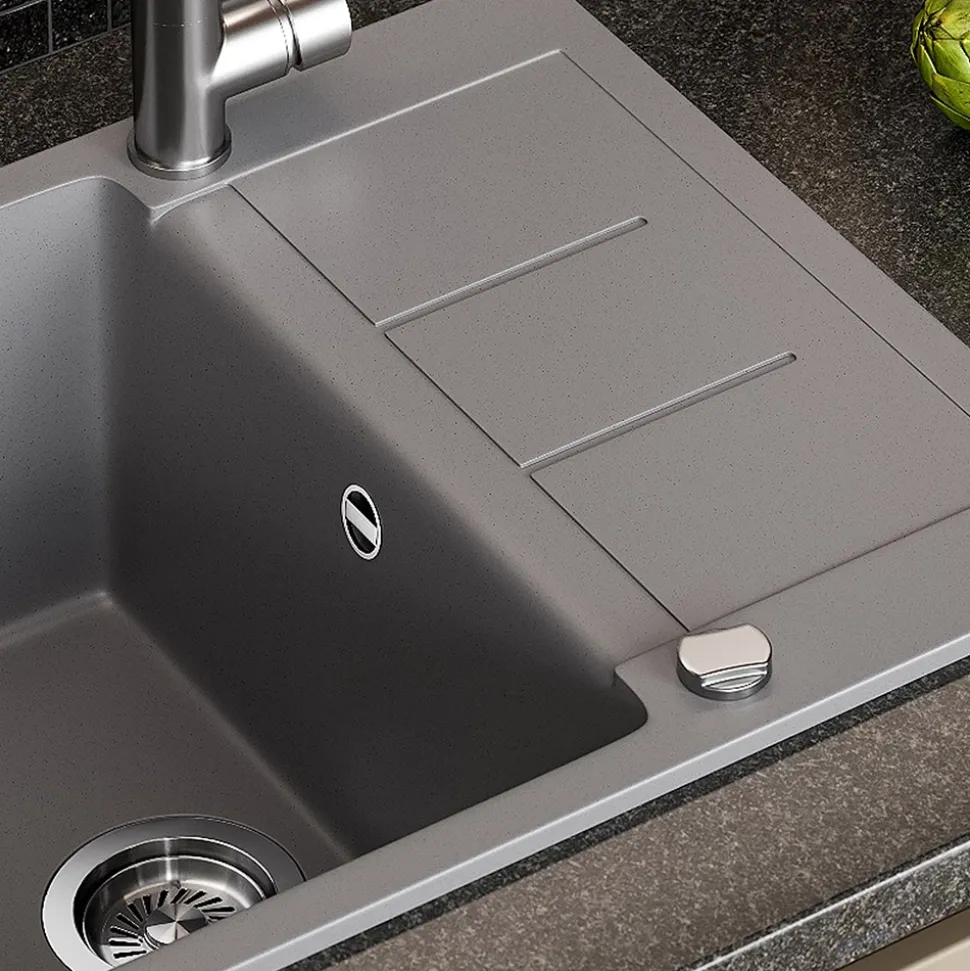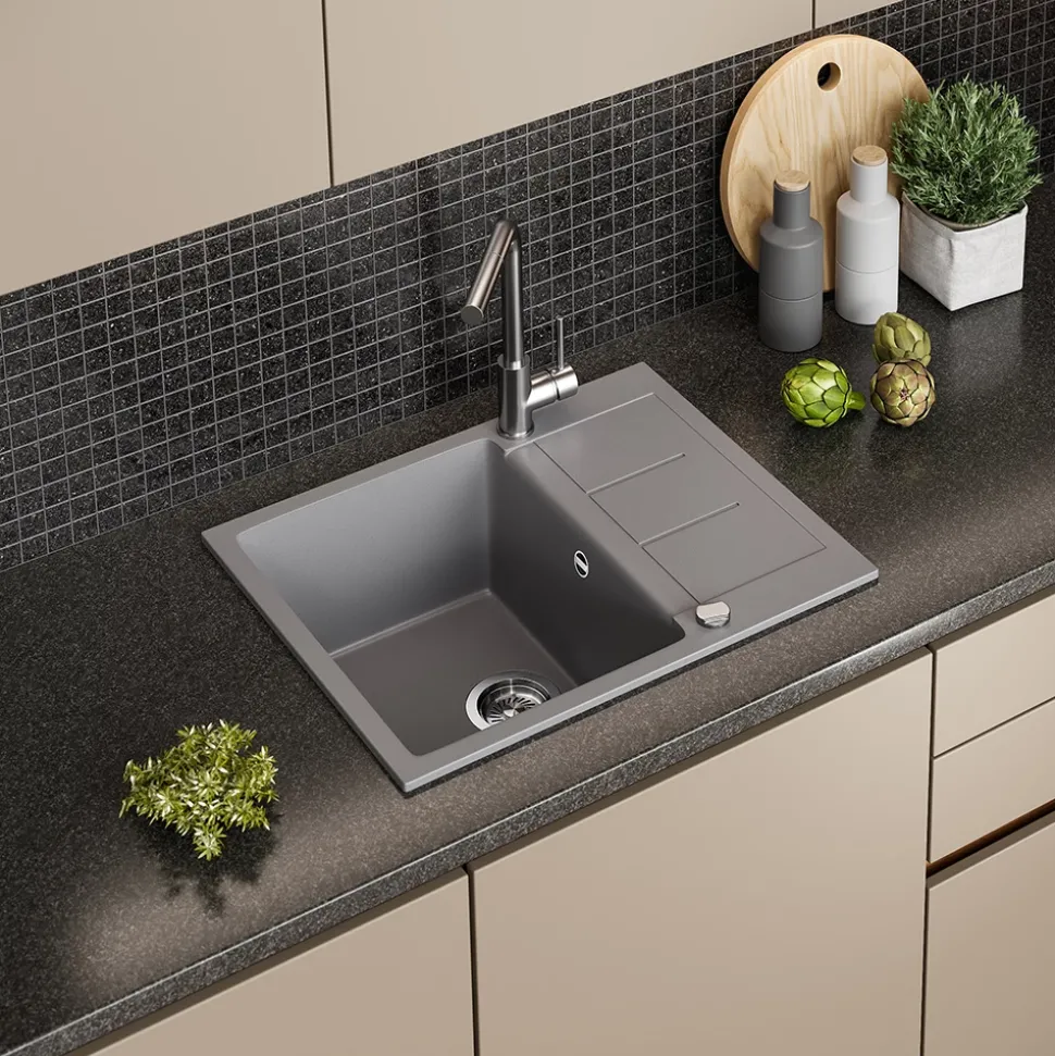 - MATERIAL: Das Spülbecken besteht zu 80 % aus Quarz und 20 % aus speziellen Harzen, was eine pflegeleichte, robuste und langlebige Oberfläche gewährleistet.
