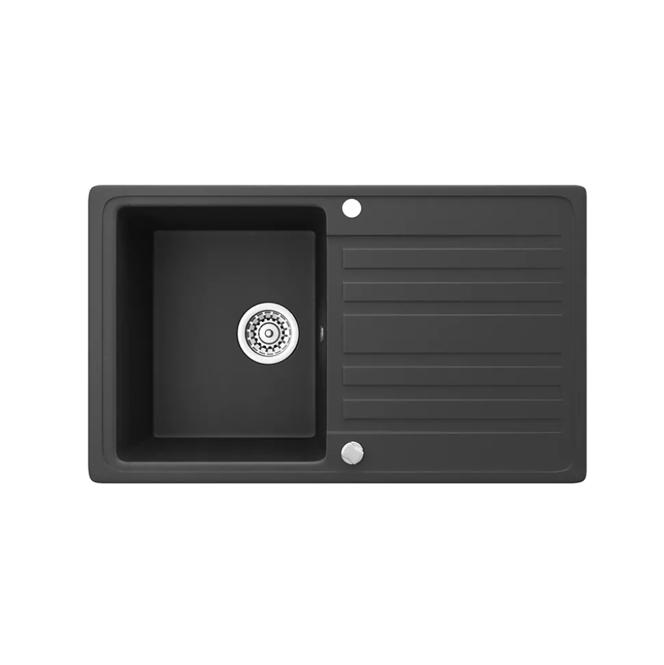 - Die Spüle aus Granit mit abtropfflügel ist widerstandsfähig gegen Chemikalien und stoßsicher, ideal für eine langlebige und robuste Küchenausstattung.