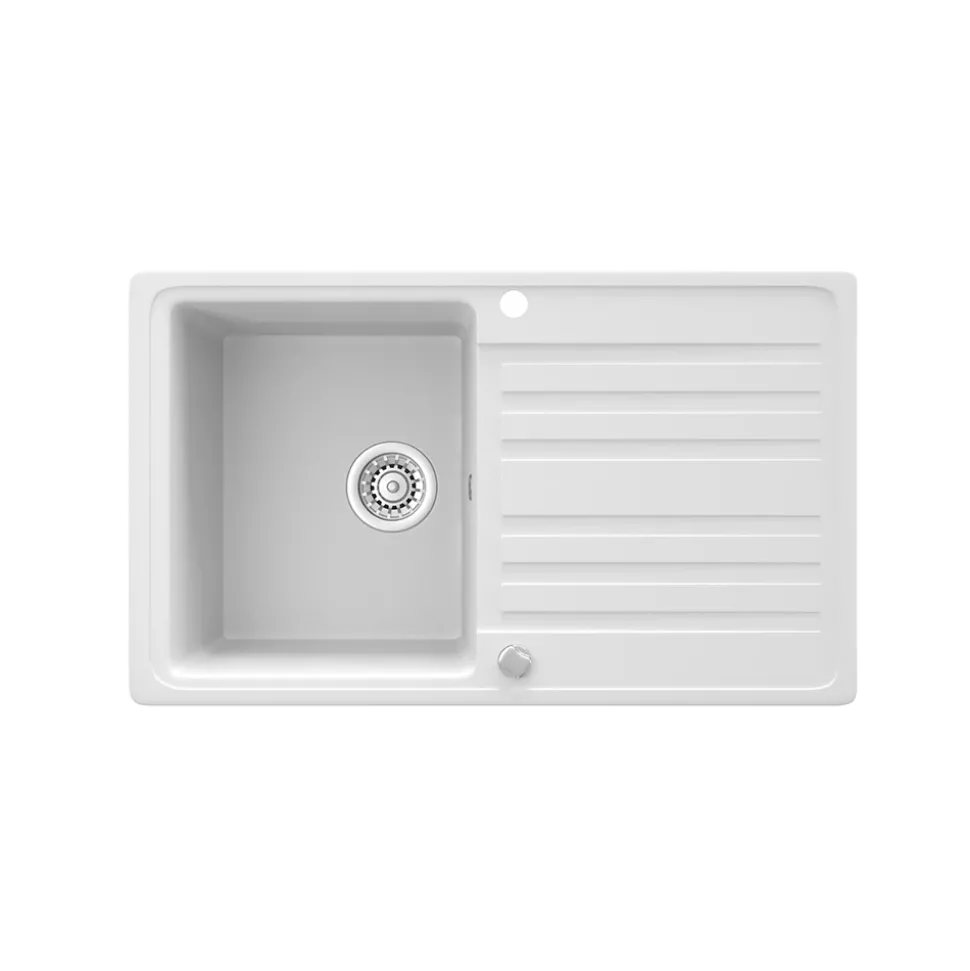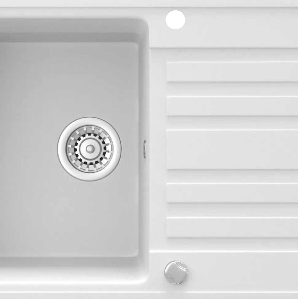 - Die Spüle aus Granit mit abtropfflügel ist widerstandsfähig gegen Chemikalien und stoßsicher, ideal für eine langlebige und robuste Küchenausstattung.