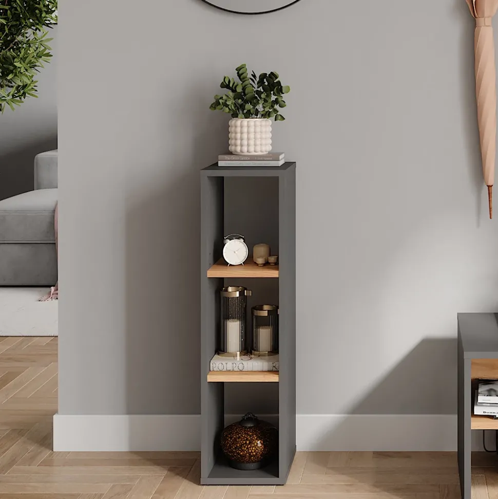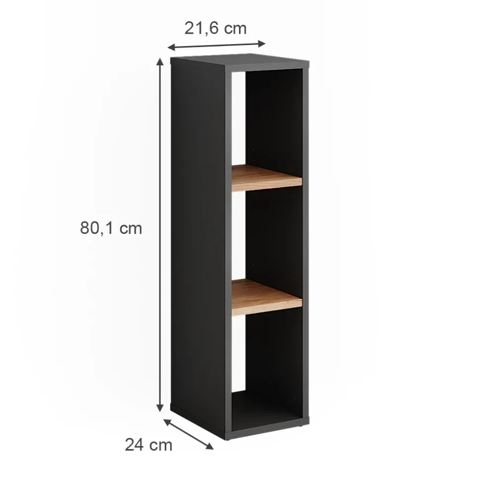 - MAßE: Das Regal hat eine Tiefe von 24 cm, eine Breite von 21,6 cm und eine Höhe von 80,1 cm. Die detaillierten Größen sind auf den Fotos angegeben.