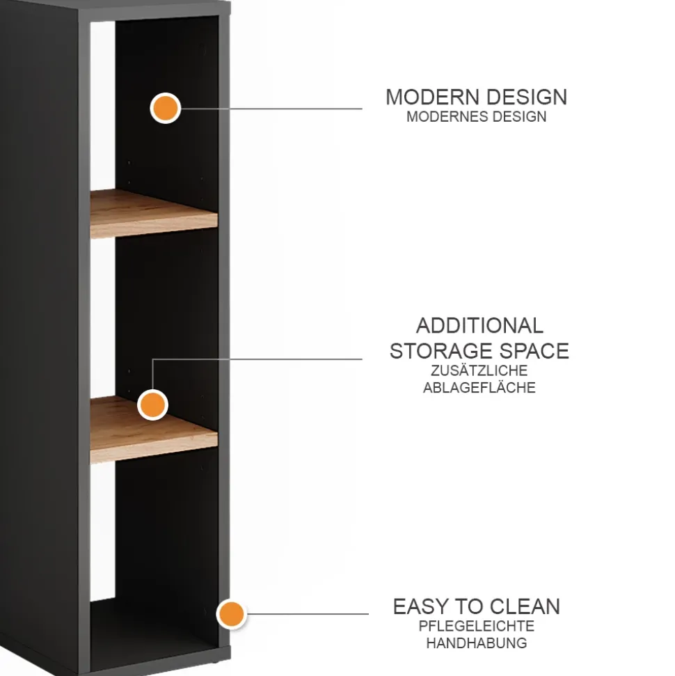 Das Standregal Orlando ist nicht nur ein einfaches Möbelstück für den Eingangsbereich, sondern ein echtes Raumwunder. Mit ausreichend Platz für Schuhe, Mützen und Accessoires sorgt es für Ordnung und Übersichtlichkeit. Die verstellbaren Einlegeböden bieten Flexibilität und Anpassungsfähigkeit, während das moderne Design für ein stilvolles Ambiente sorgt. Durch die Möglichkeit, das Standregal mit anderen Artikeln der Orlando-Serie zu kombinieren, lässt sich eine harmonische Einrichtung im gesamten Wohnbereich schaffen. Machen Sie Ihr Zuhause mit dem Standregal Orlando zu einem Ort, an dem Funktionalität und Ästhetik Hand in Hand gehen.