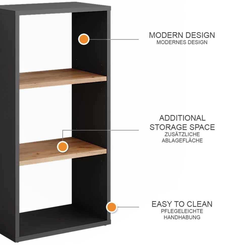 Das Standregal Orlando ist nicht nur ein einfaches Möbelstück für den Eingangsbereich, sondern ein echtes Raumwunder. Mit ausreichend Platz für Schuhe, Mützen und Accessoires sorgt es für Ordnung und Übersichtlichkeit. Die verstellbaren Einlegeböden bieten Flexibilität und Anpassungsfähigkeit, während das moderne Design für ein stilvolles Ambiente sorgt. Durch die Möglichkeit, das Standregal mit anderen Artikeln der Orlando-Serie zu kombinieren, lässt sich eine harmonische Einrichtung im gesamten Wohnbereich schaffen. Machen Sie Ihr Zuhause mit dem Standregal Orlando zu einem Ort, an dem Funktionalität und Ästhetik Hand in Hand gehen.