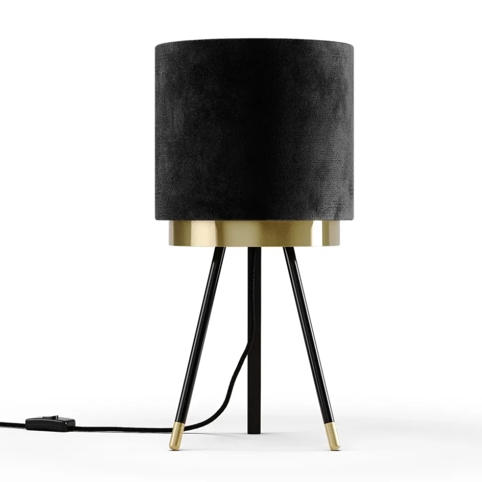 - MATERIAL: Die Tischleuchte besteht aus pflegeleichter Samt mit goldfarbenem Metallring. Das Gestell ist aus Holz gefertigt.