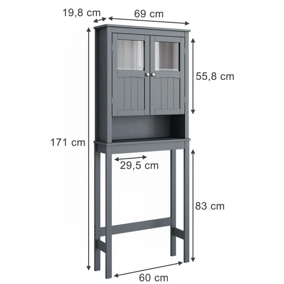 - MAßE: Der Toilettenüberbau hat folgende Abmessung: Höhe: 171 cm, Breite: 69 cm, Tiefe: 19,8 cm. Die detaillierten Größen sind auf den Fotos angegeben.