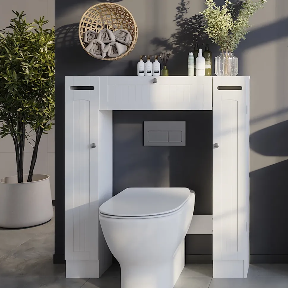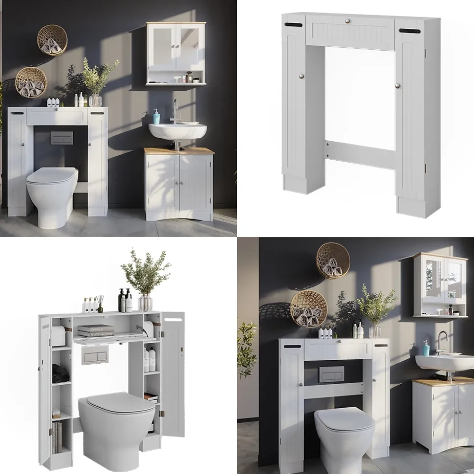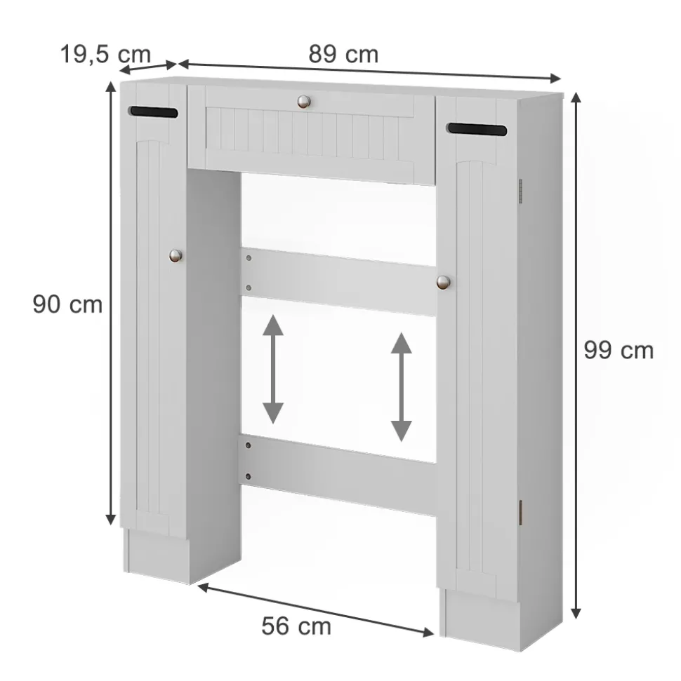 Verwandeln Sie Ihr Badezimmer in eine aufgeräumte und stilvolle Wohlfühloase mit dem Toilettenschrank Bianco. Dieser elegante Toilettenüberbau bietet nicht nur viel Stauraum für all Ihre Badutensilien, sondern verleiht Ihrem Badezimmer auch einen Hauch von klassischem Charme. Mit seinen zwei praktischen Toilettenpapierspendern sorgt das Regal dafür, dass Sie immer genug Vorrat haben. Der Bianco Toilettenschrank passt perfekt zu anderen Artikeln der Bianco-Kollektion und bietet somit eine harmonische Einrichtung für Ihr gesamtes Badezimmer. Gönnen Sie sich und Ihrem Badezimmer das gewisse Extra mit dem Toilettenschrank!