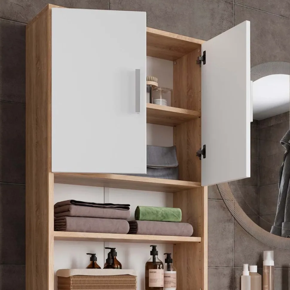 Der Toilettenschrank ist das perfekte Möbelstück für jedes Badezimmer. Mit seinem funktionellen Design bietet er nicht nur Platz für all Ihre Toilettenartikel, sondern setzt auch stilvolle Akzente in Ihrem Zuhause. Die offenen Ablagen bieten ausreichend Platz für Handtücher, Toilettenpapier und andere Accessoires, während die geräumigen geschlossenen Fächer all Ihre anderen Dinge sicher und ordentlich aufbewahren. Die 2 Türen und die offene Öffnung für die Toilette machen die Bedienung kinderleicht und ermöglichen einen schnellen Zugriff auf alle Ihre persönlichen Hygieneartikel. Bringen Sie mit dem Toilettenschrank Ordnung und Stil in Ihr Bad.