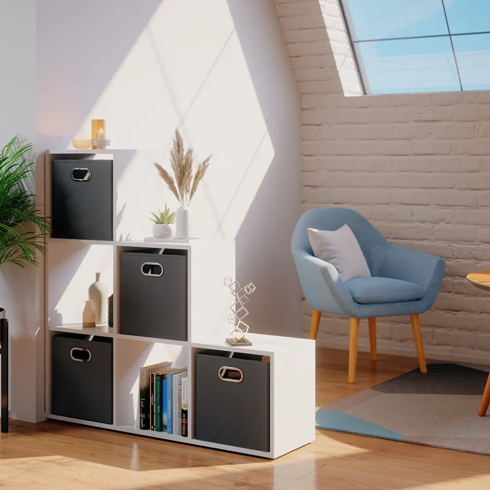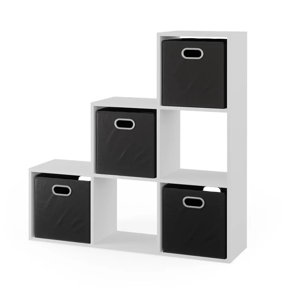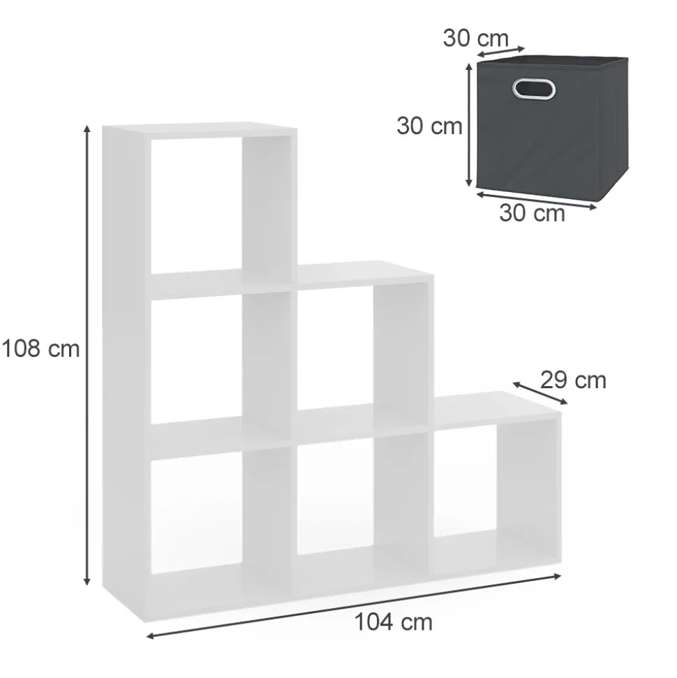 - LIEFERUMFANG: Treppenregal, 4x Faltbox, Montageanleitung, Montagematerial.