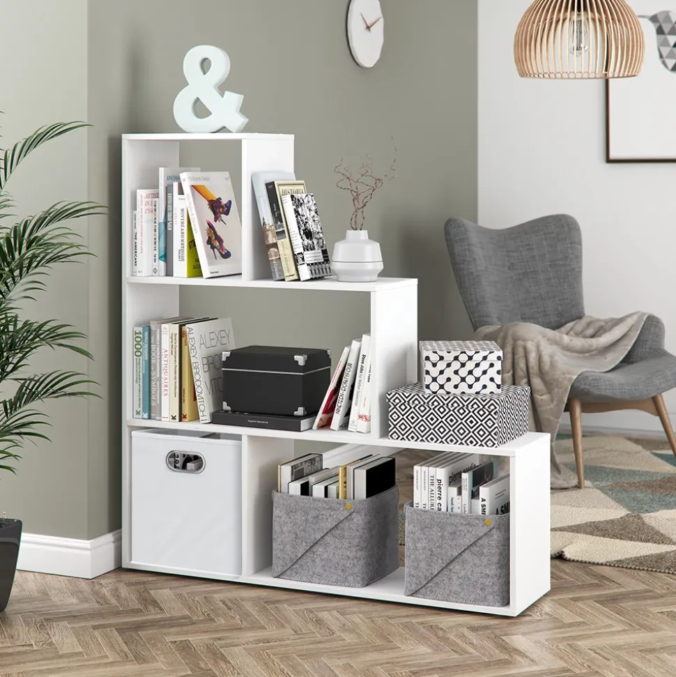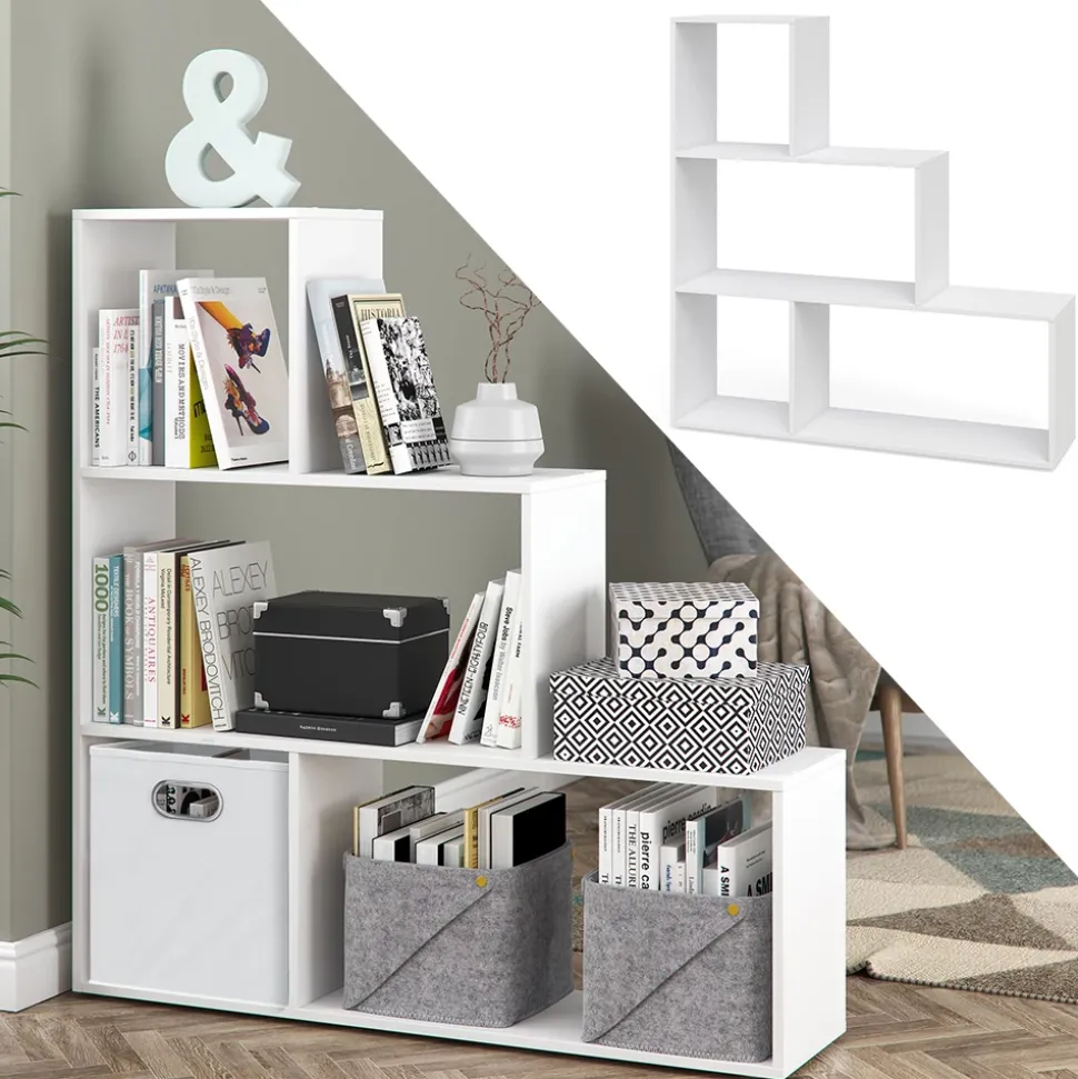 Das Treppenregal ist ein wahrer Alleskönner. Mit seinen vier offenen Ablagen lässt sich das Regal problemlos als Raumtrenner verwenden oder als Bücherregal nutzen. Das leiterförmige Design des Regals ist nicht nur funktional, sondern auch äußerst ästhetisch. Die kastenförmigen Regale mit einer Größe von 30×30 cm bieten ausreichend Platz für Bücher oder Dekoration. Durch die Möglichkeit, das Treppenregal mit anderen Möbelstücken zu kombinieren, passt es perfekt in jeden Wohnbereich. Schaffen Sie mit diesem Regal ein harmonisches Wohngefühl und bewundernde Blicke Ihrer Gäste sind garantiert.