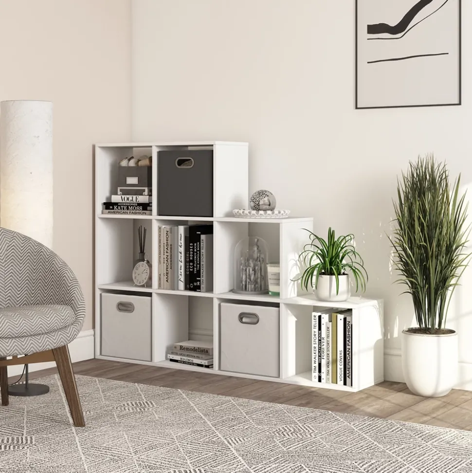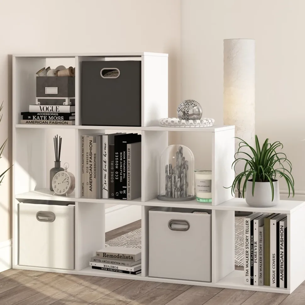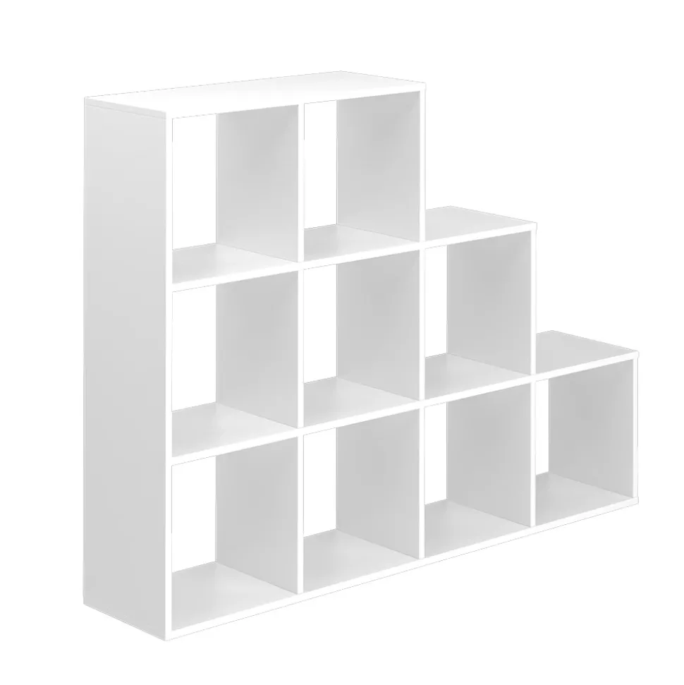 - Das stehende Bücherregal bietet neun offene Ablageflächen in leiterförmigem Design und Kastenregale mit 30×30 cm Größe.