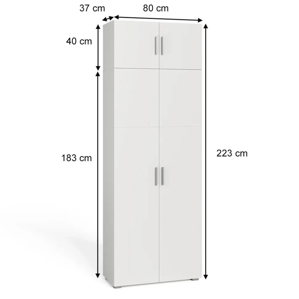 - MAßE: Mehrzweckschrank mit Schrankaufsatz Tiefe: 37 cm Breite: 80 cm Höhe: 182,4 cm