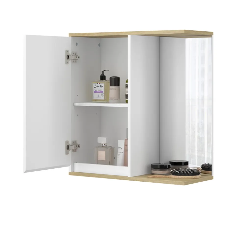 Der Bad Spiegelschrank Livia ist nicht nur ein praktisches Möbelstück für Ihr Badezimmer, sondern auch ein stilvolles Designelement. Mit seiner großzügigen Aufbewahrungsmöglichkeit bietet er genügend Platz für all Ihre Pflegeprodukte und Accessoires. Die praktische Ablagefläche ermöglicht es Ihnen, Ihre Lieblingsstücke dekorativ in Szene zu setzen. Dank des integrierten Spiegels ist der Badspiegelschrank auch perfekt zum Styling und Schminken geeignet. Livia ist somit nicht nur funktional, sondern bereichert auch Ihr Badezimmer mit Eleganz und Stil – ein Must-Have für alle, die ihren persönlichen Wohlfühlort im Bad kreieren möchten.