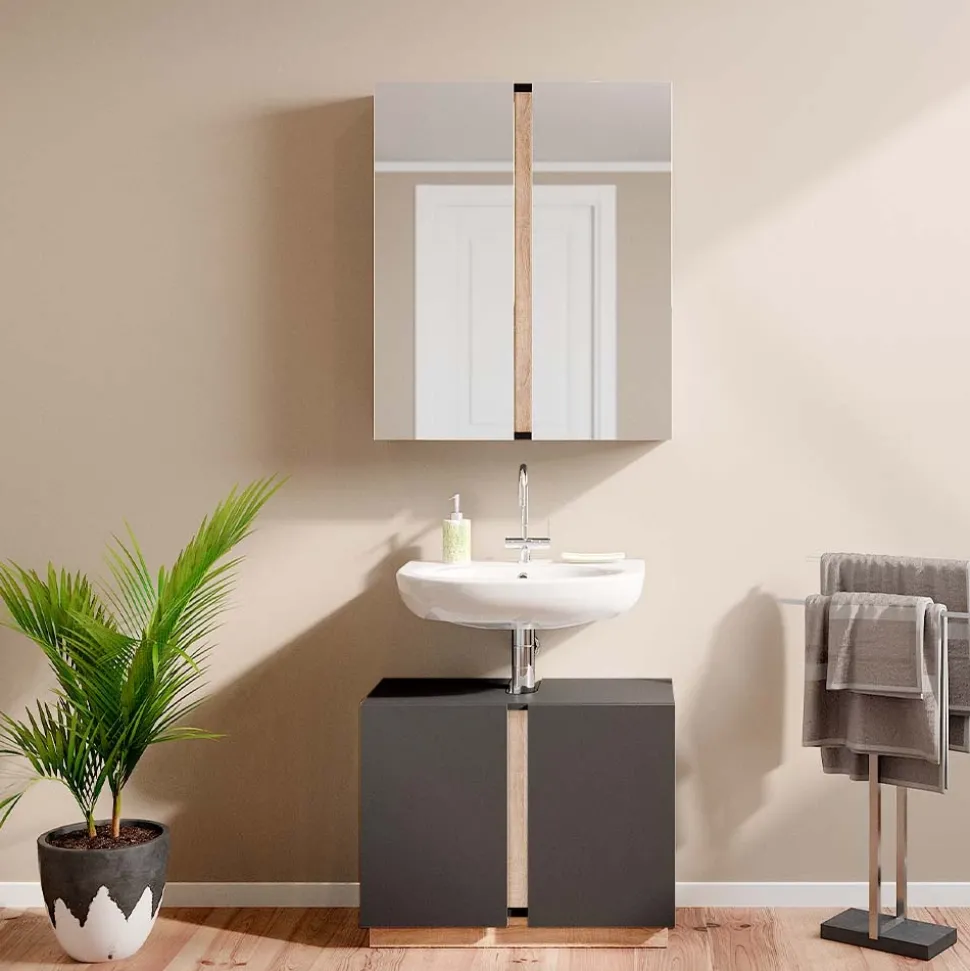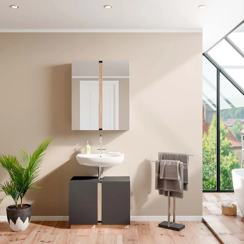 - LIEFERUMFANG: Badezimmerspiegel, Waschbeckenunterschrank, Montageanleitung, Montagematerial