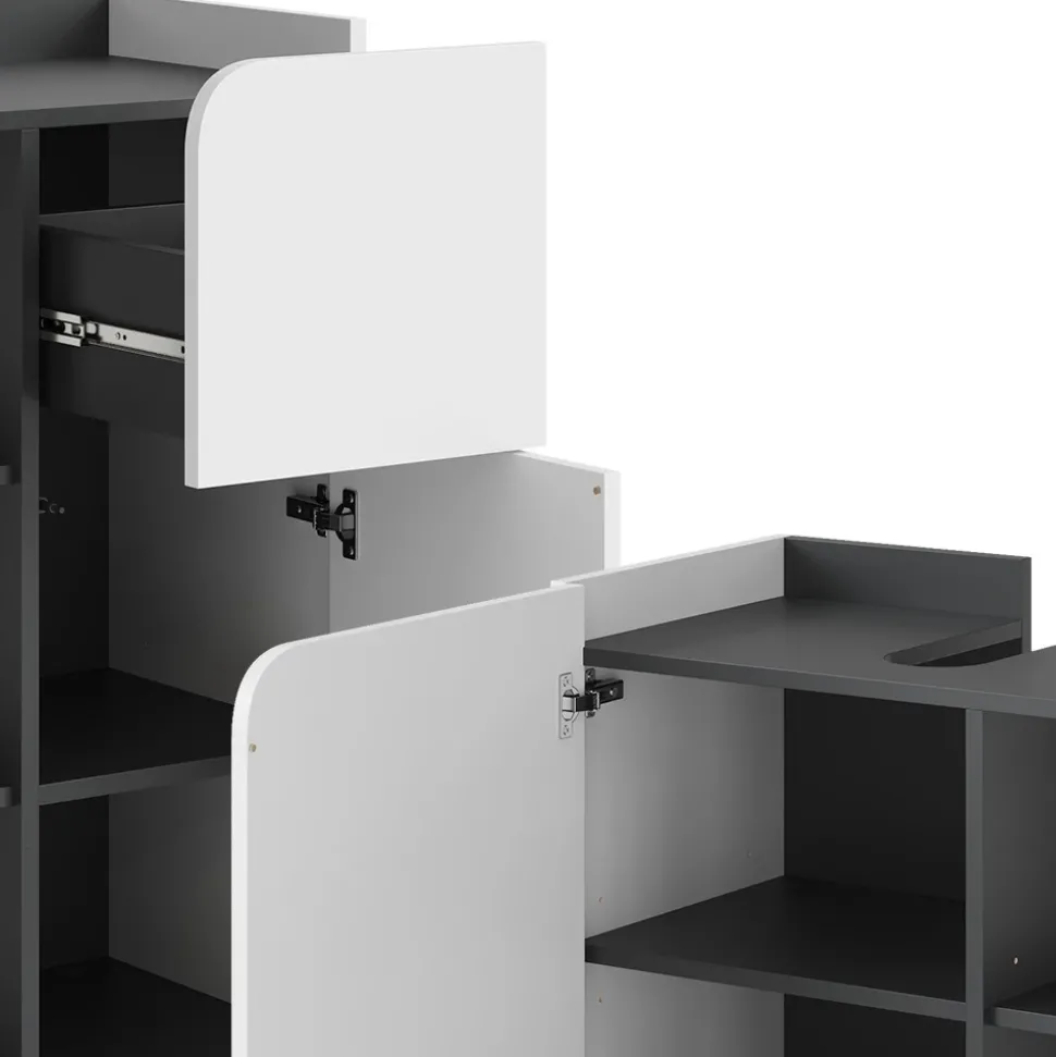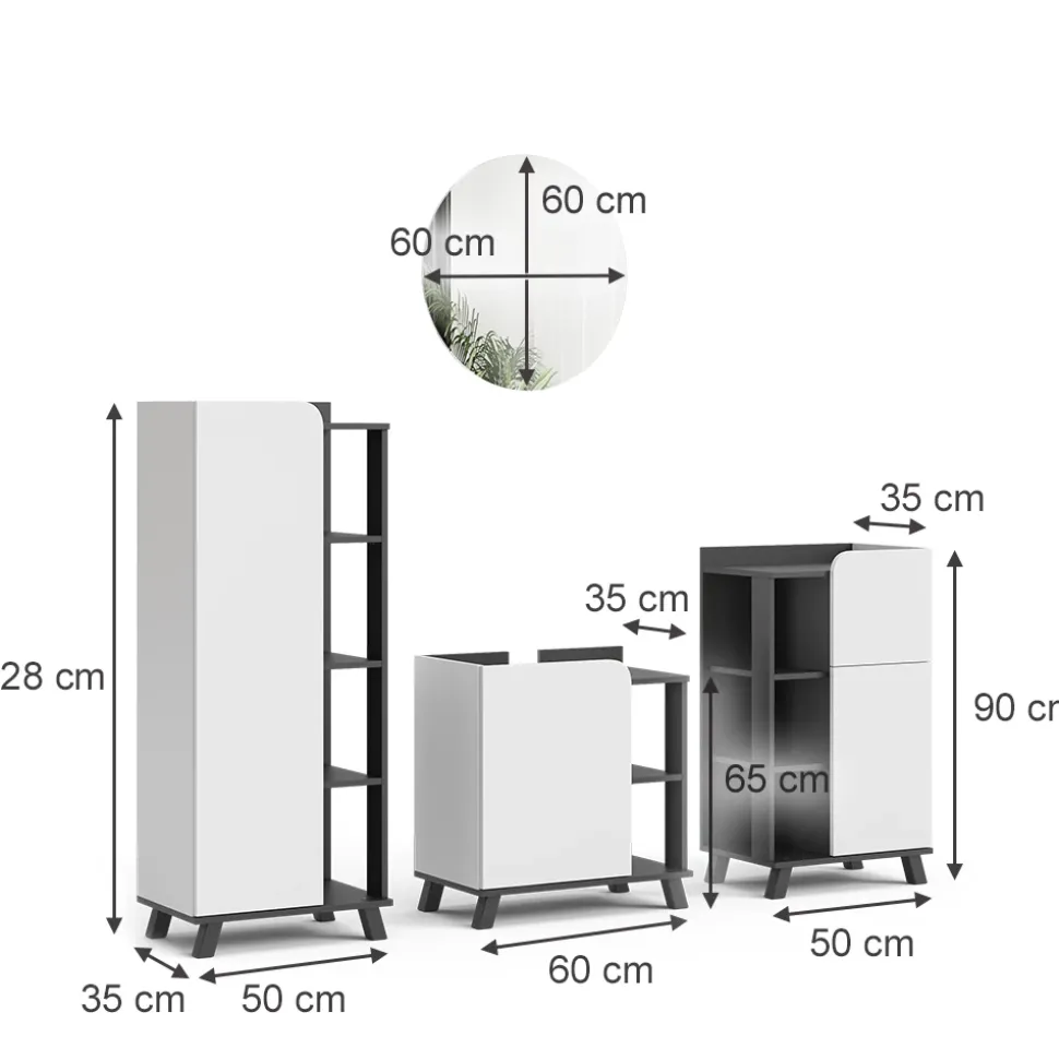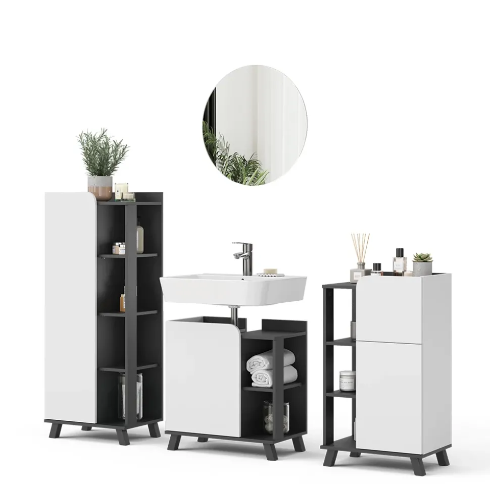 - MATERIAL: Das Badmöbel-Set besteht aus einer pflegeleichten Spanplatte, 16 mm, mit einer Melaminharzbeschichtung.
