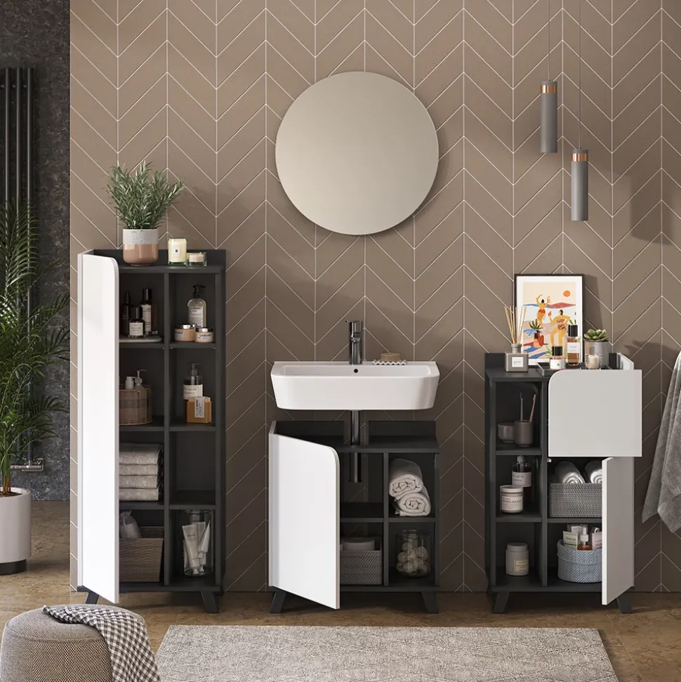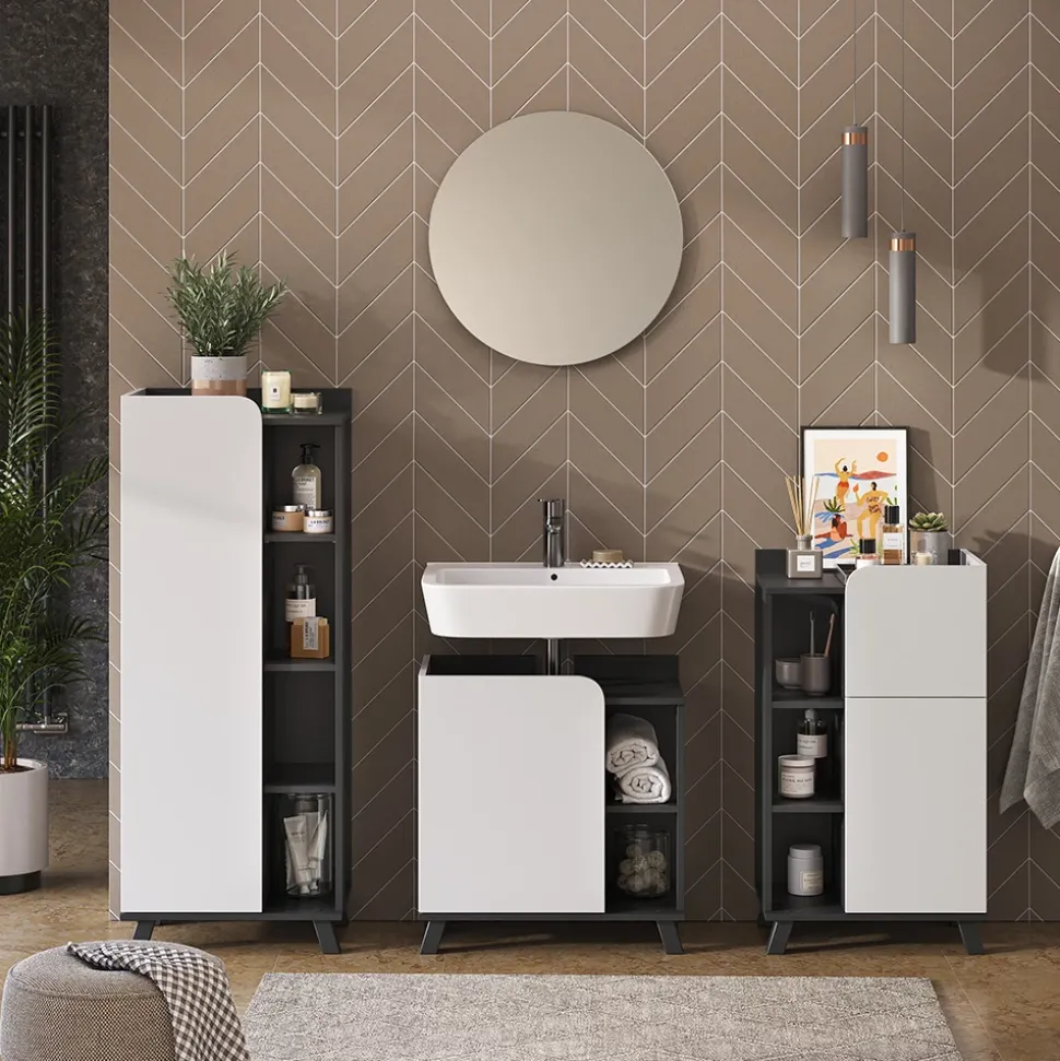 - Mit dem Set mit dem Waschbeckenunterschrank „Karen“ treffen Sie eine gute Entscheidung für eine stilvolle und praktische Ergänzung für Ihr Zuhause.
