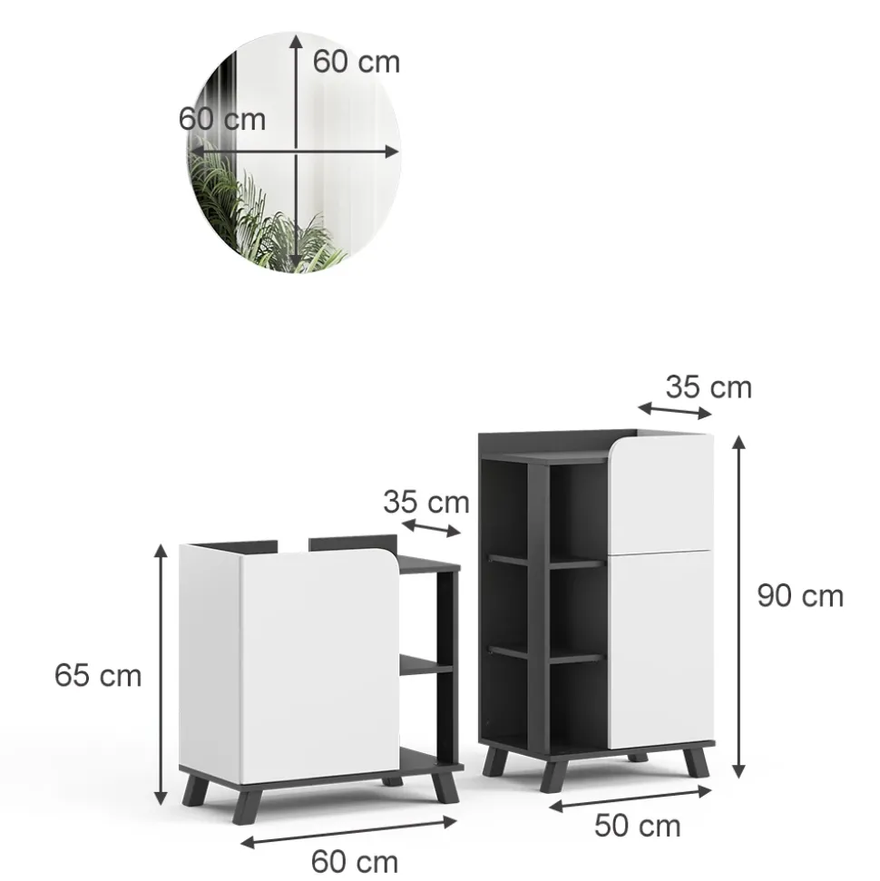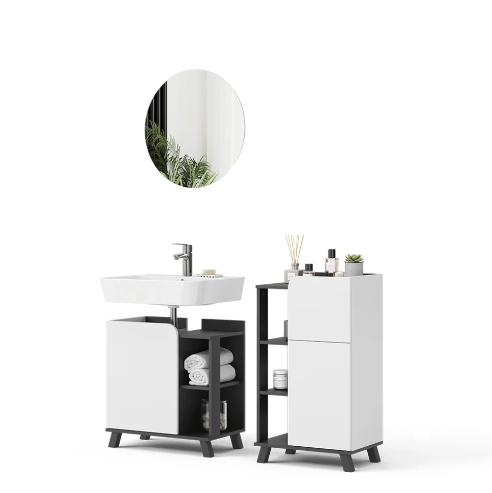 - MATERIAL: Das Badmöbel-Set besteht aus einer pflegeleichten Spanplatte, 16 mm, mit einer Melaminharzbeschichtung.