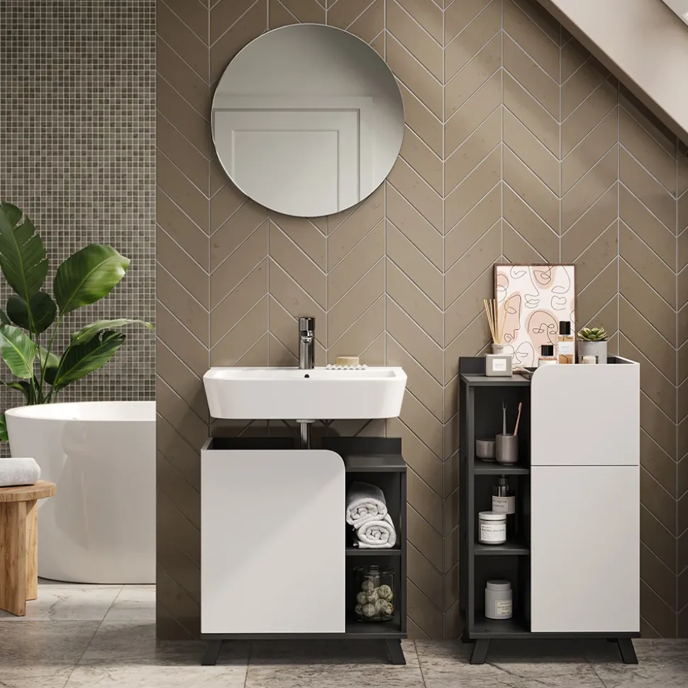 - Das Set mit Waschbeckenunterschrank „Karen“ ist die optimale Lösung für jede Wohnung. Sein stilvolles Aussehen macht es zu einer guten Entscheidung für ein modernes Badezimmer.
