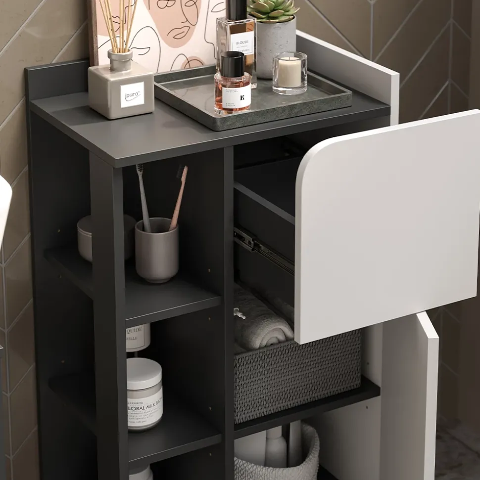 - Das Badezimmerschrank-Set ist modern und funktional gestaltet, perfekt für die Aufbewahrung von Badutensilien. Es bietet ausreichend Stauraum und sorgt für Ordnung im Badezimmer.