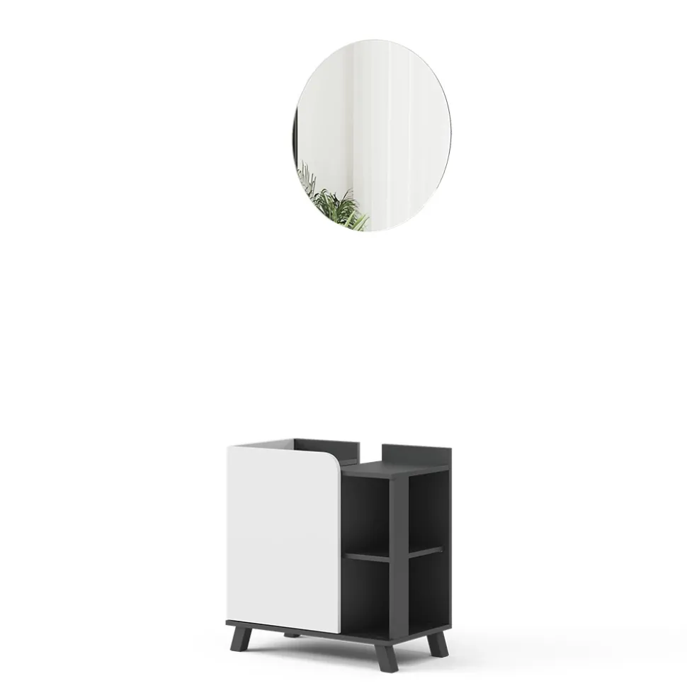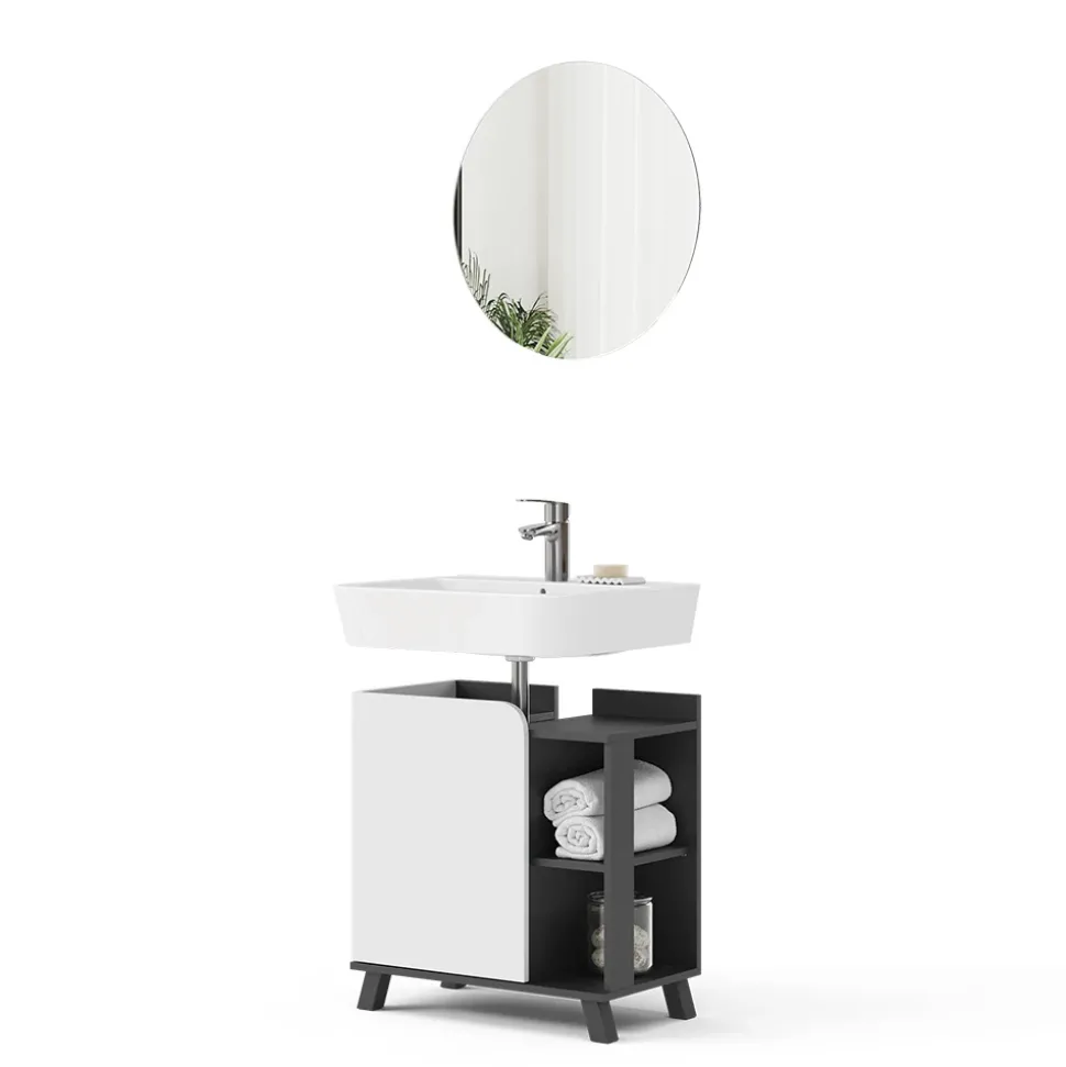 - LIEFERUMFANG: Badezimmerspiegel, Waschbeckenunterschrank, Montageanleitung, Montagematerial (Dekoration nicht enthalten)