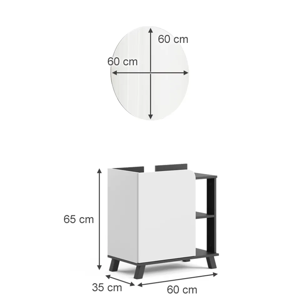 - MATERIAL: Das Badmöbel-Set besteht aus einer pflegeleichten Spanplatte, 16 mm, mit einer Melaminharzbeschichtung.