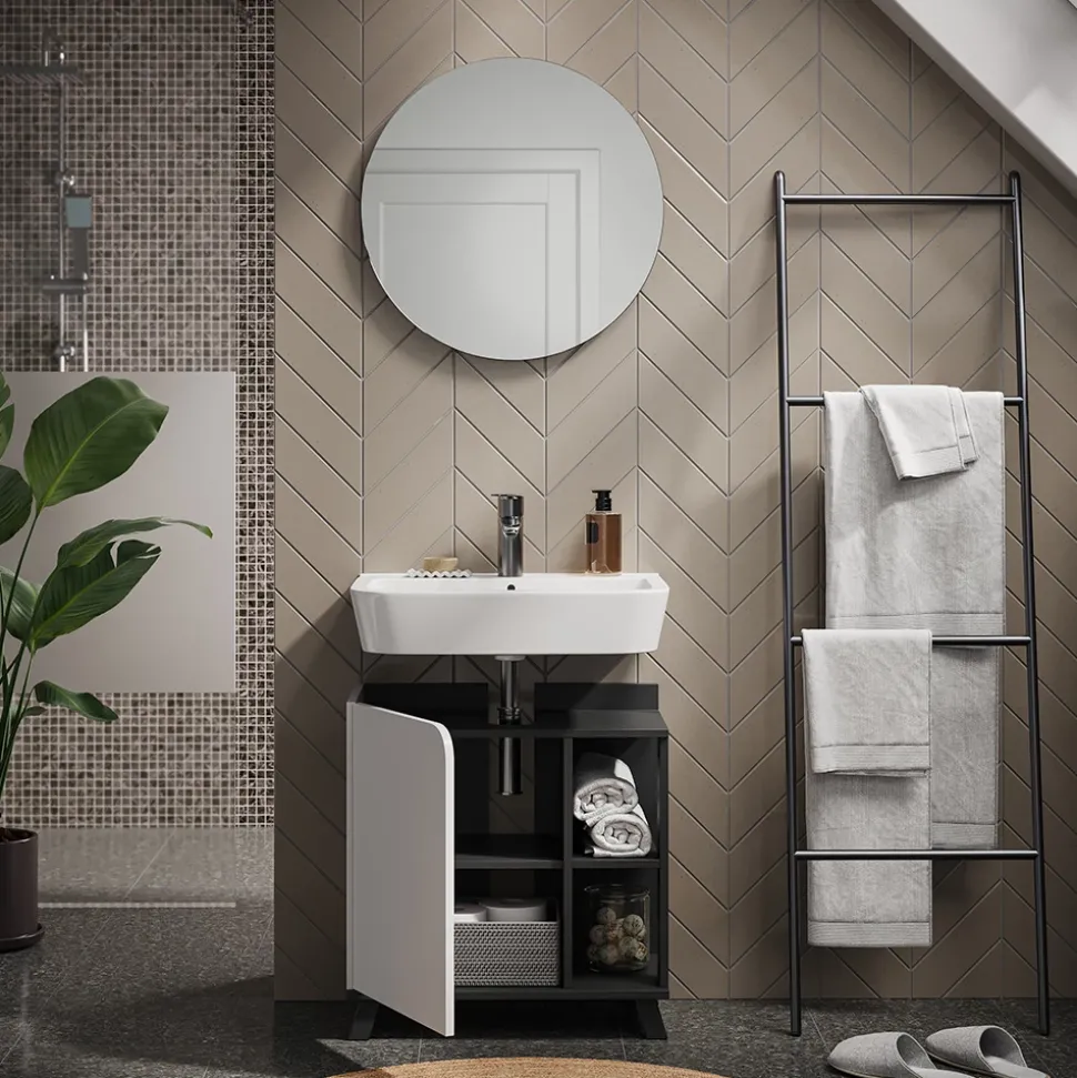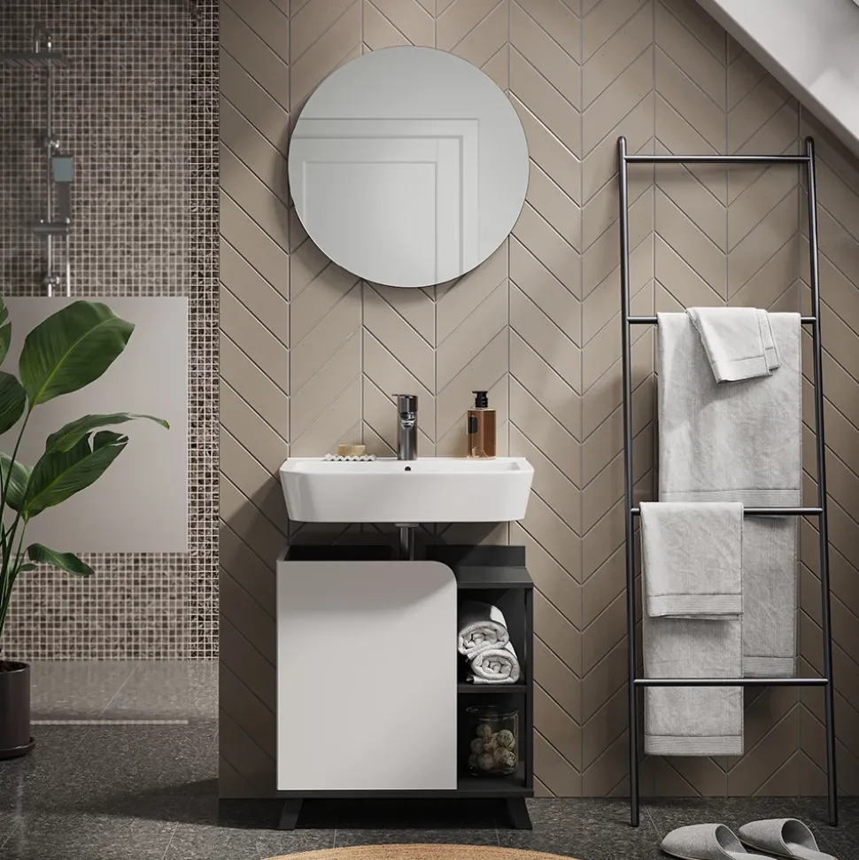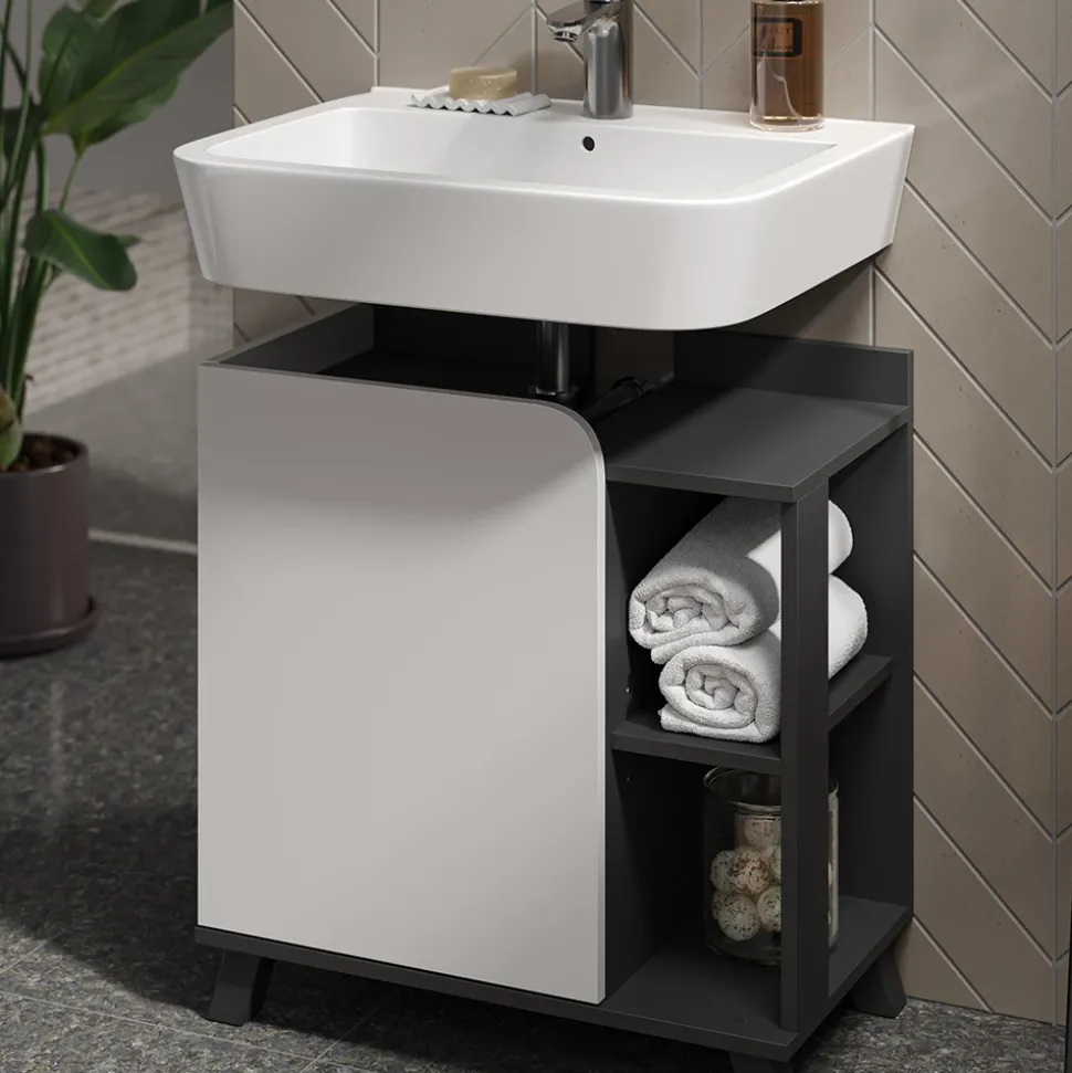 - Mit Karen’s Set mit Waschbeckenunterschrank treffen Sie eine gute Entscheidung für jede Wohnung. Das stilvolle Design passt sich harmonisch in jedes Badezimmer ein.