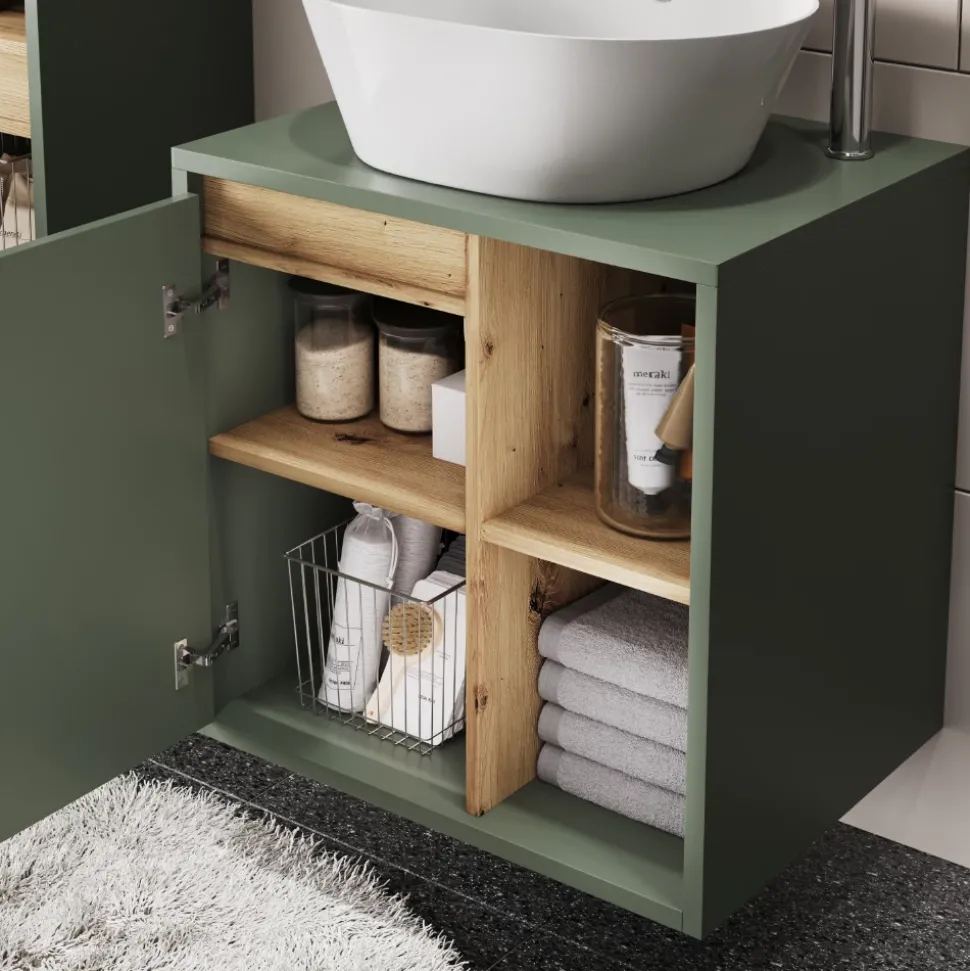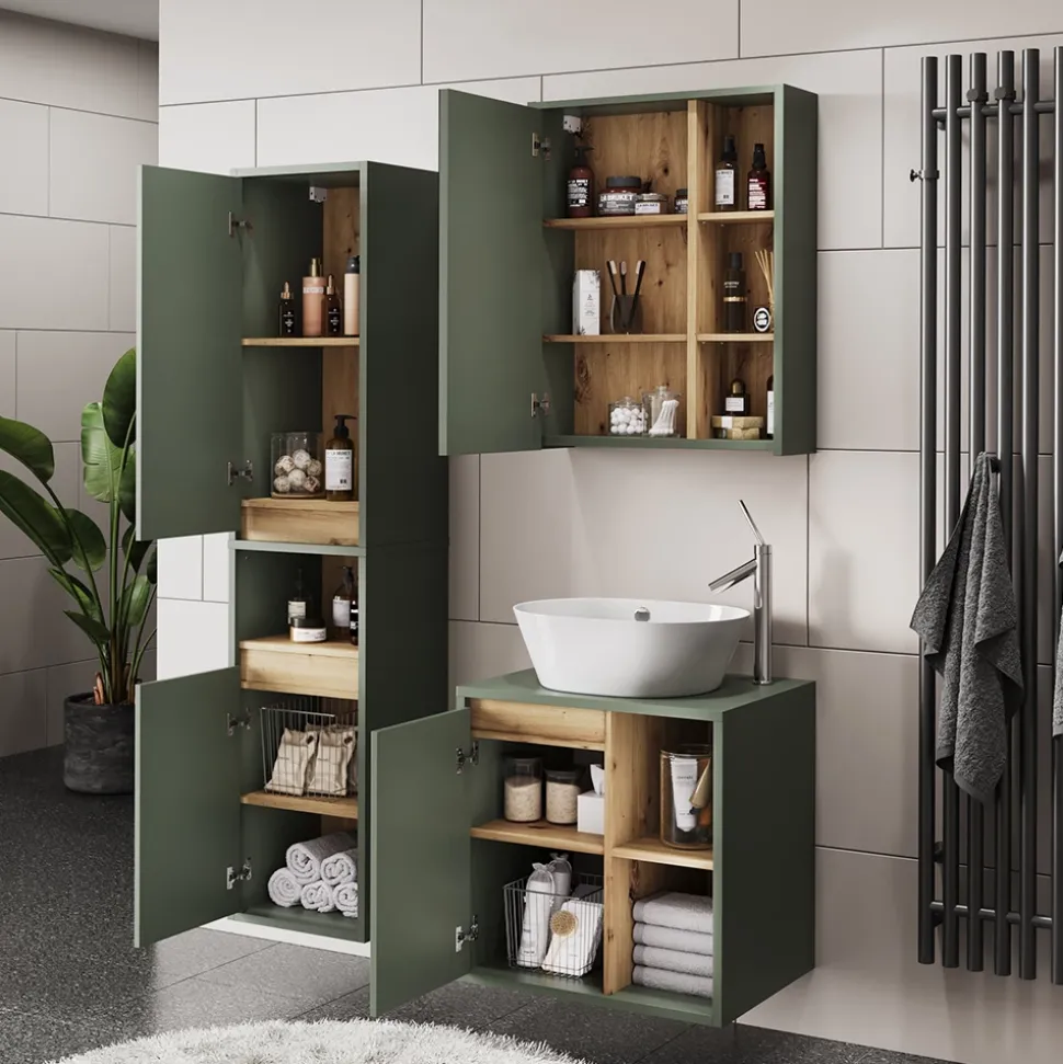 - Das Badezimmerschrank-Set überzeugt mit modernem Design und hoher Funktionalität. Viel Stauraum und praktische Features machen es zur idealen Lösung für jedes Badezimmer.
