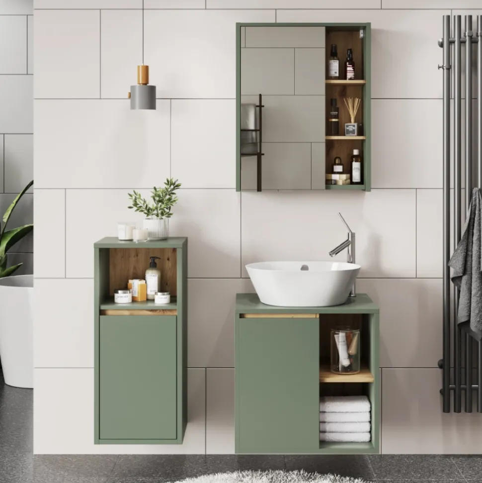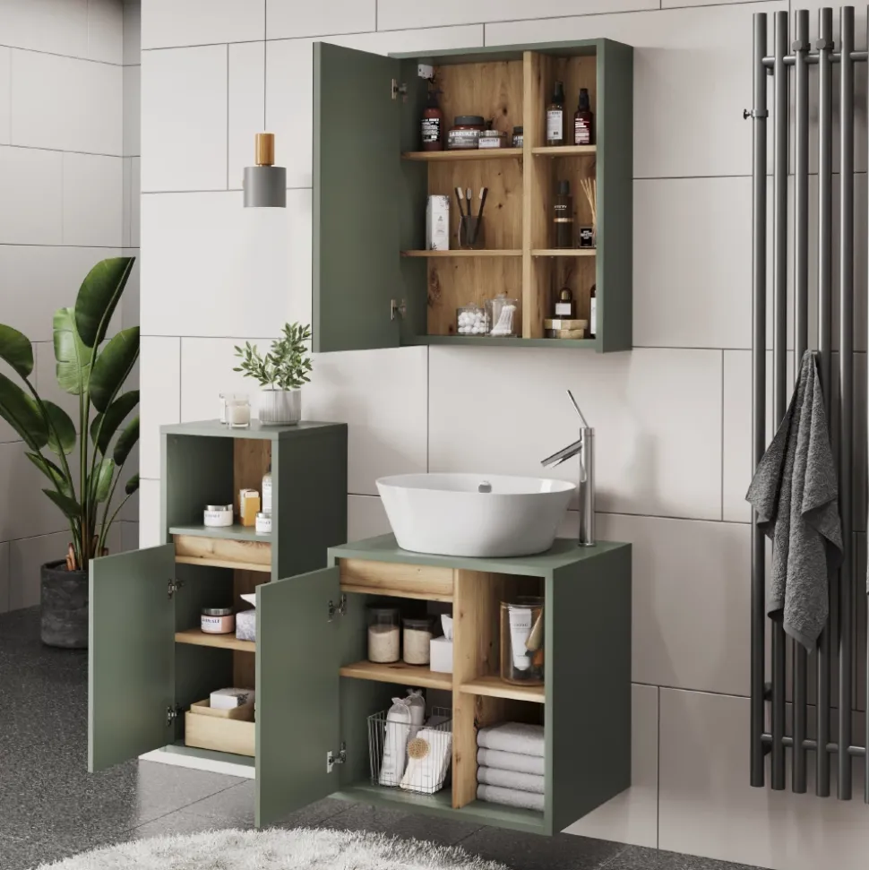 - Das Badezimmerschrank-Set bietet praktischen Stauraum für Ihre Badutensilien und Handtücher. Mit modernem Design und funktionaler Aufteilung ist es die ideale Ergänzung für jedes Badezimmer.