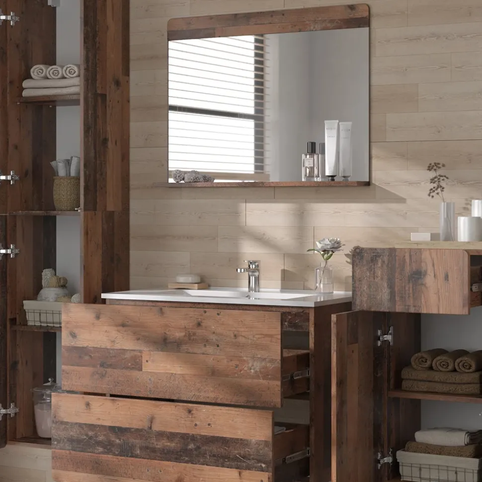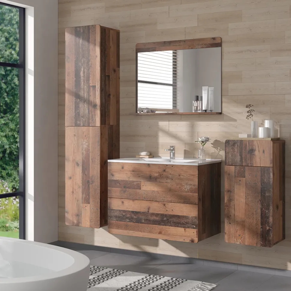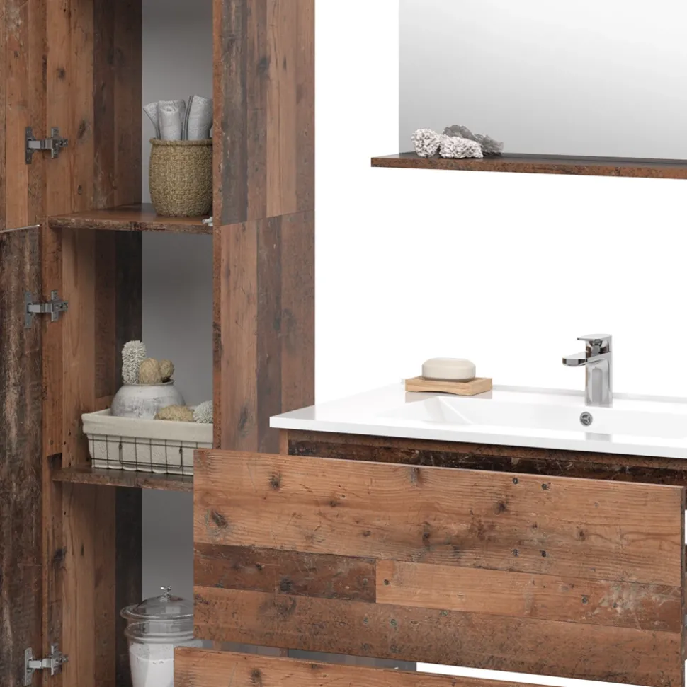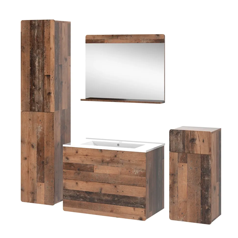 - LIEFERUMFANG: Waschbeckenunterschrank inkl. Waschbecken, Badspiegel, Hochschrank, Midischrank, Montageanleitung, Montagematerial (Dekoration nicht enthalten)