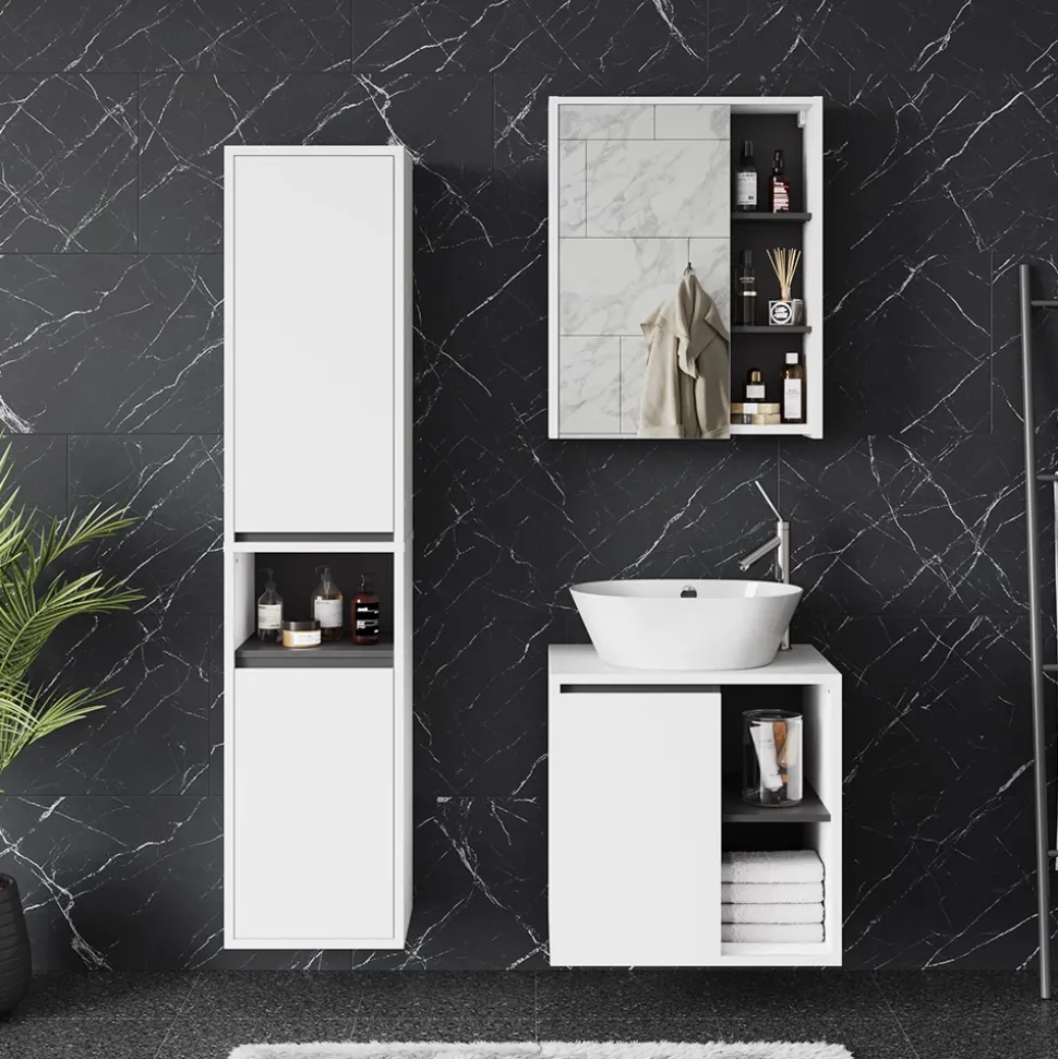 - Das Badezimmerschrank-Set überzeugt mit modernem Design und hoher Funktionalität. Viel Stauraum und praktische Features machen es zur idealen Lösung für jedes Badezimmer.