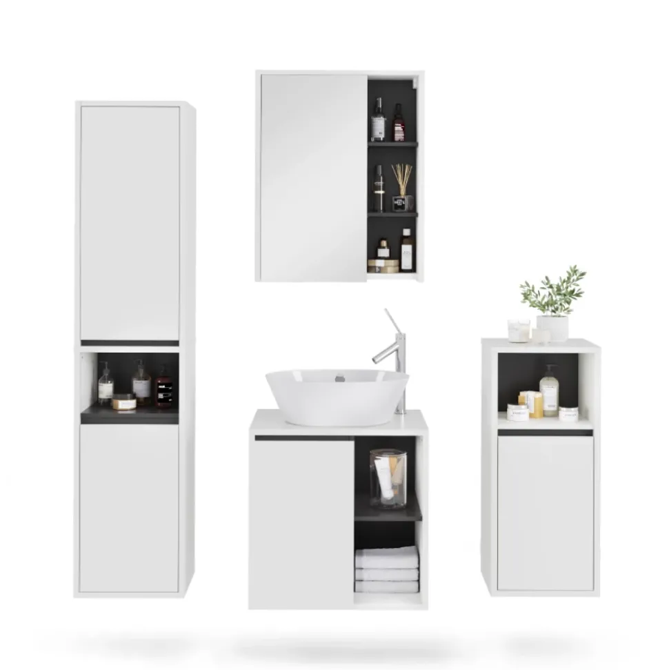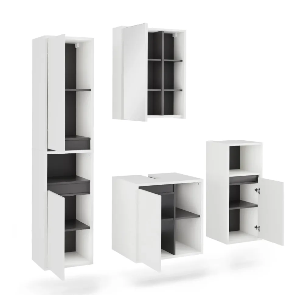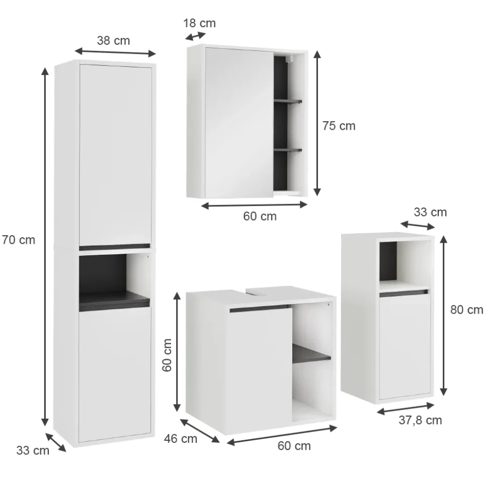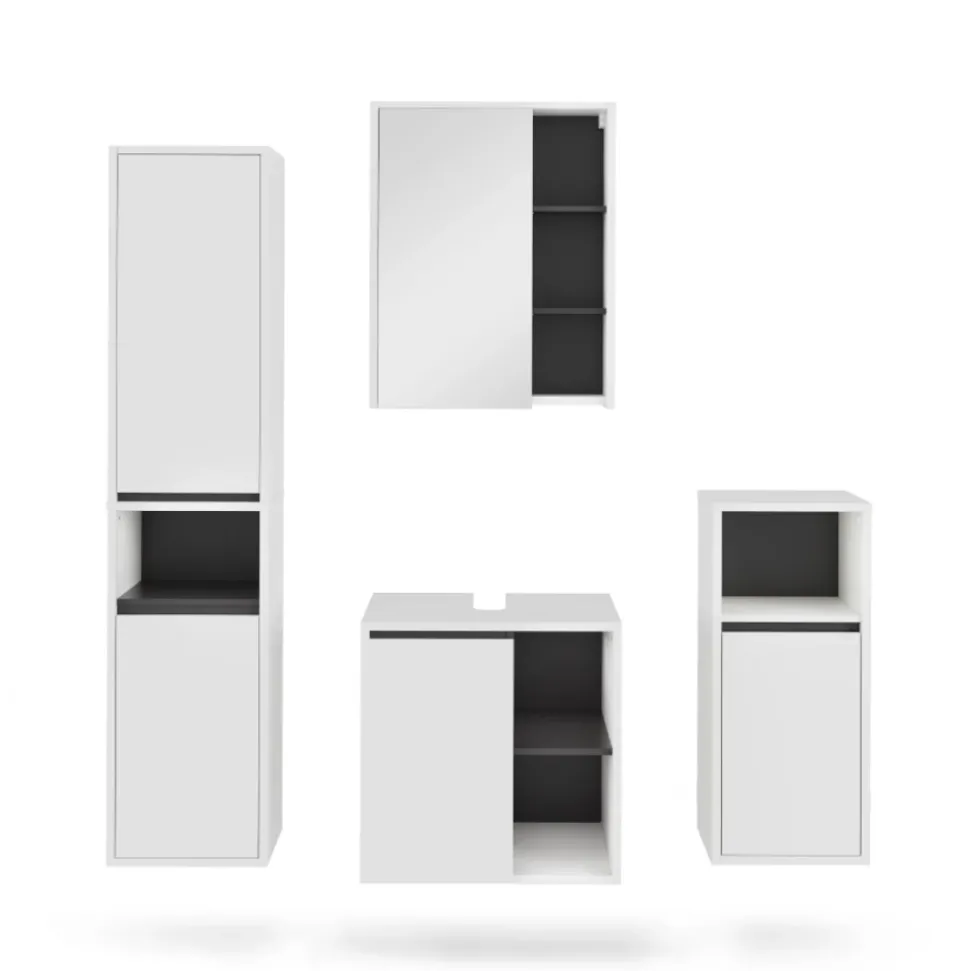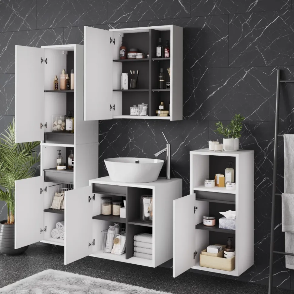 - Das Badezimmerschrank-Set besticht durch stilvolles Design und bietet ausreichend Stauraum für Ihre Badutensilien. Hochwertige Verarbeitung garantiert Langlebigkeit und Funktionalität.