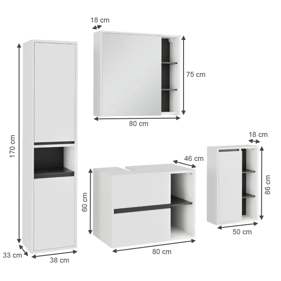 - LIEFERUMFANG: Badspiegelschrank, Midischrank, Hochschrank, Waschbeckunterschrank, Montageanleitung, Montagematerial (Dekoration nicht enthalten)