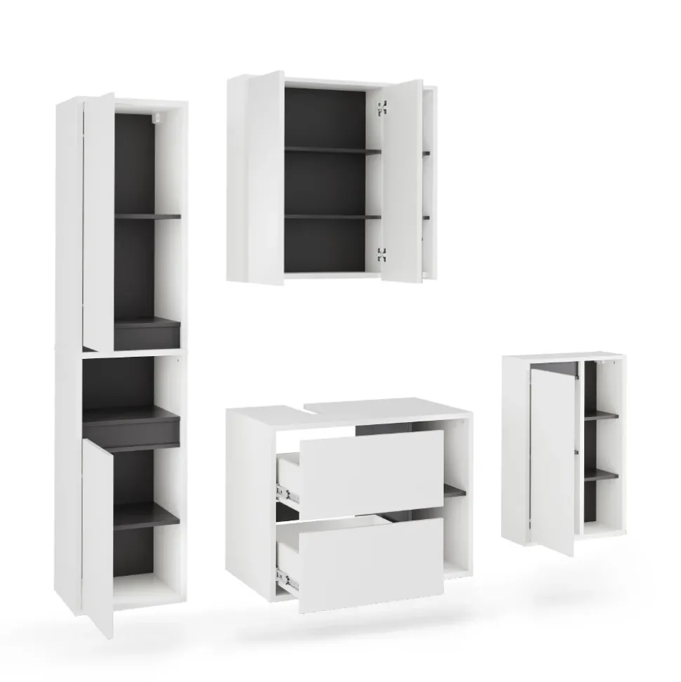 - Das Badezimmerschrank-Set besticht durch elegante, moderne Optik und bietet viel Stauraum für Ihre Badutensilien.
