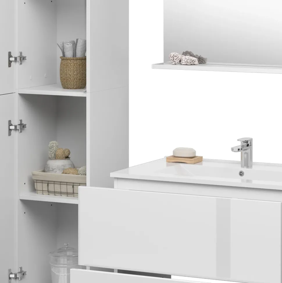 - Das Badezimmerschrank-Set hat geschlossene und offene Fächer, kann an der Wand aufgehängt werden und bietet viel Stauraum. Ideal für die Organisation von Badutensilien.