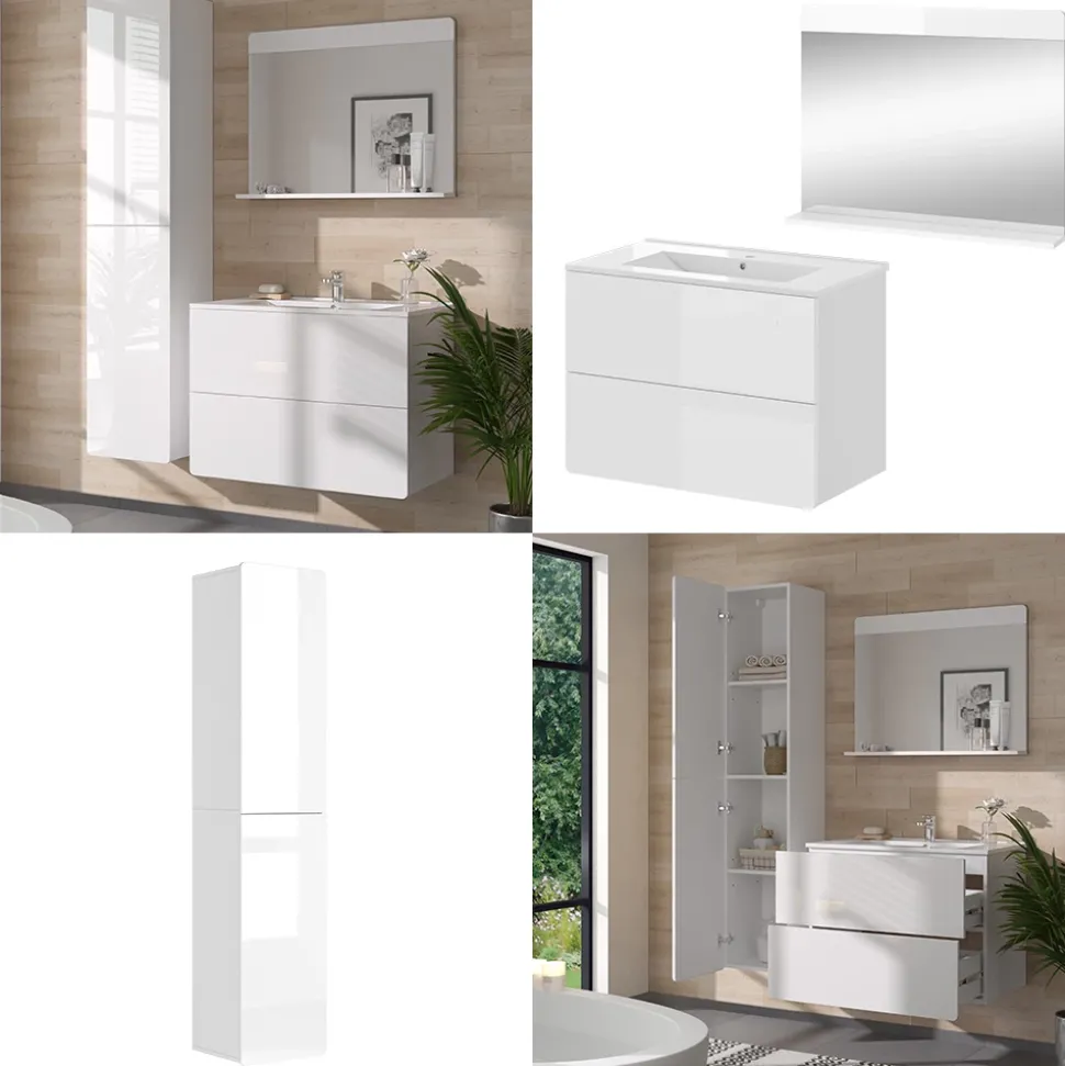 - MATERIAL: Das Badmöbel-Set besteht aus pflegeleichter, melaminharzbeschichteter 16 mm Spanplatte. Das Waschbecken ist aus Keramik gefertigt