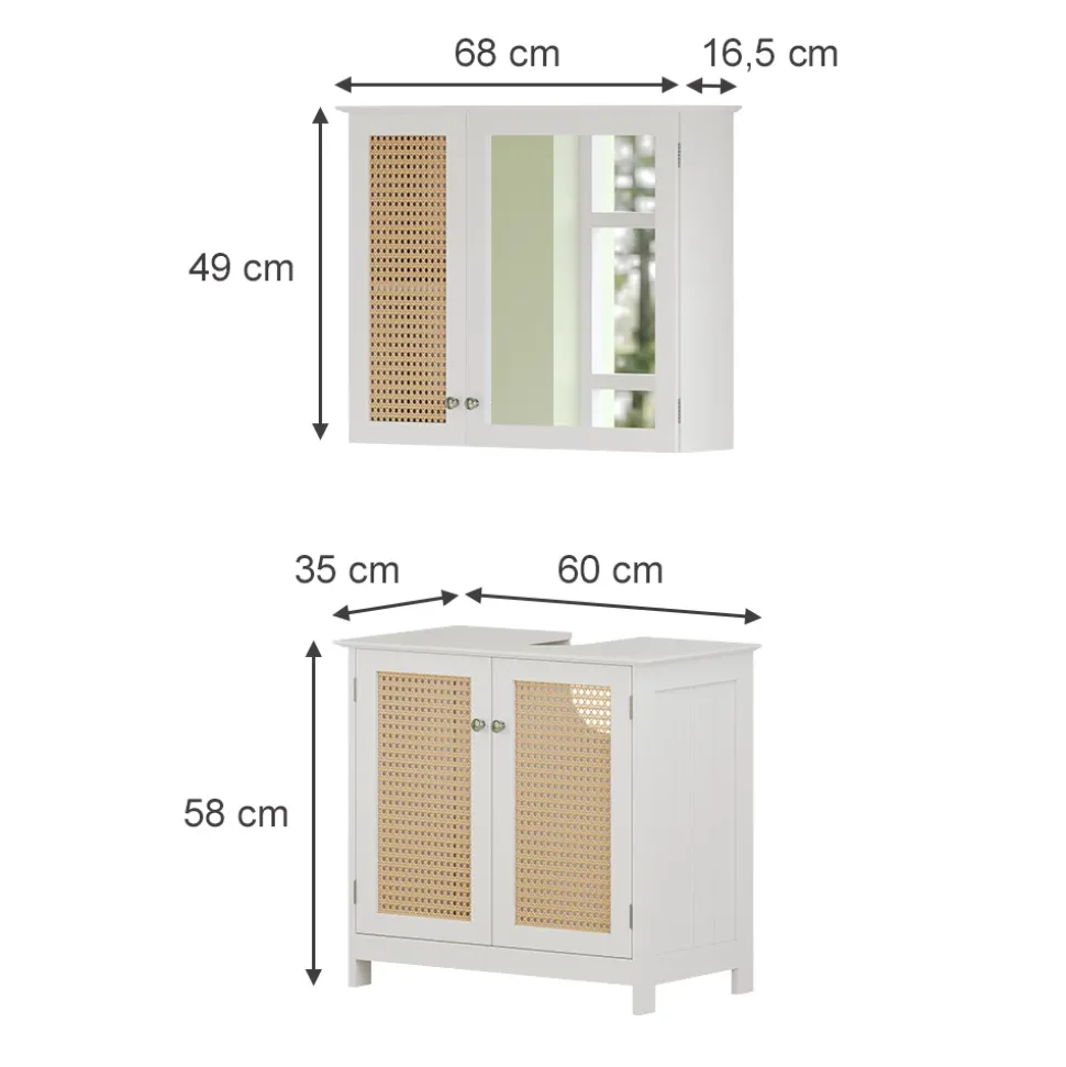 - PRODUKTMAßE: Spiegelschrank: 68 x 49 x 16,5 cm, 9,6 kg. Waschtischunterschrank: 60 x 58 x 35 cm, 9,7 kg.