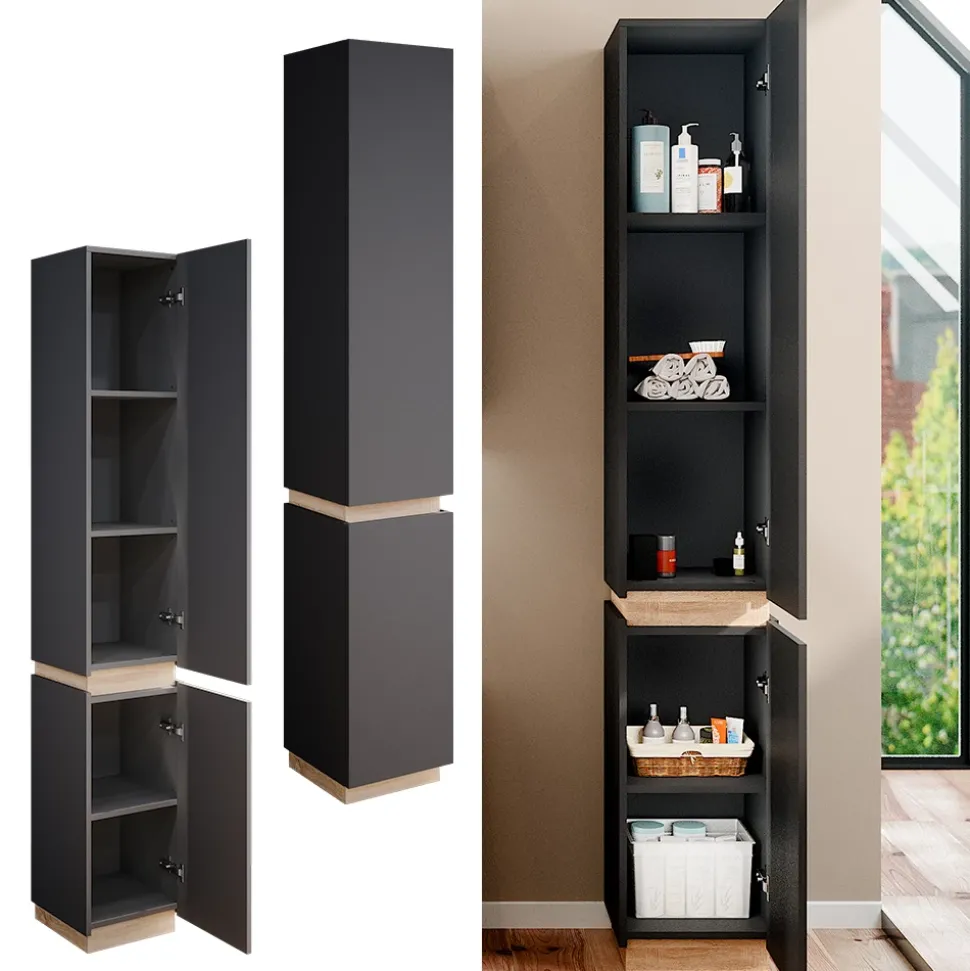 - Erleben Sie den stilvollen Look des schmalen Badezimmerschranks „Gloria“. Universell für jedes Haus geeignet, bietet er optimales Design und Freude an der Benutzung.