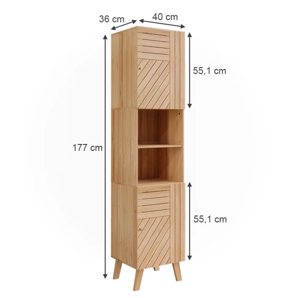 - MAßE: Der Hochschrank, mit 2 Türen, hat folgende Maße: Tiefe: 36 cm, Breite: 40 cm, Höhe: 177 cm. Die detaillierten Größen sind auf den Fotos angegeben.