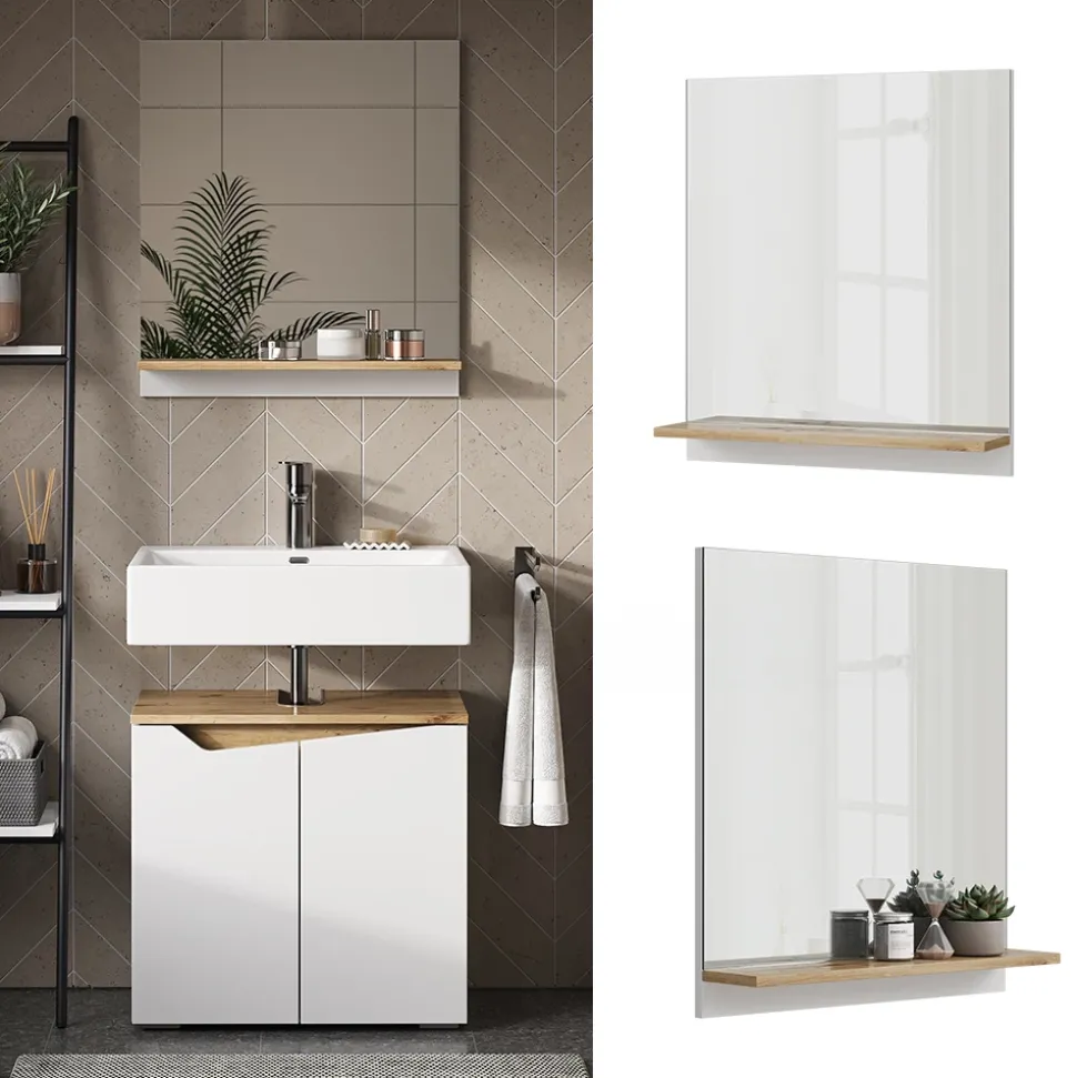 - MATERIAL: Die robuste 16 mm Spanplatte bildet die Rückwand, während die Vorderseite elegant von einem 4 mm dicken Spiegel geziert wird. Der Spiegel im Badezimmer bereitet mühelosen Pflegeaufwand