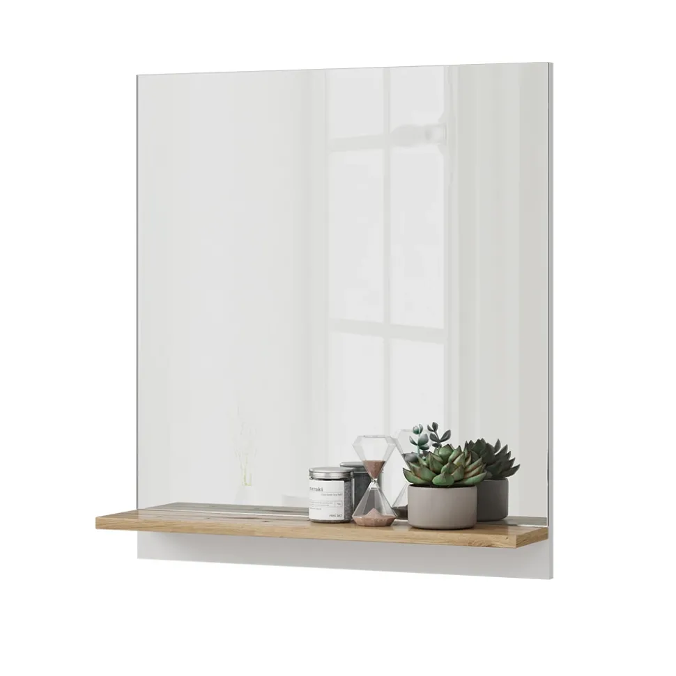 - Für eine makellose Spiegelung wählen Sie unseren eckigen Designspiegel. Klarere Reflexionen und stilvolles Ambiente über dem Waschbecken – Ihre tägliche Beauty-Routine wird zum Vergnügen.