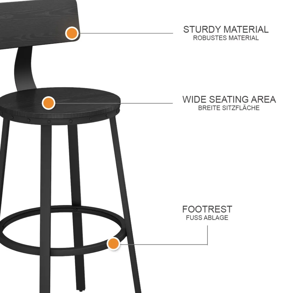 - MATERIAL: Das Barhocker 2er Set besteht aus 15 mm MDF mit einer PVC-Oberfläche. Das Gestell ist aus Stahl gefertigt.