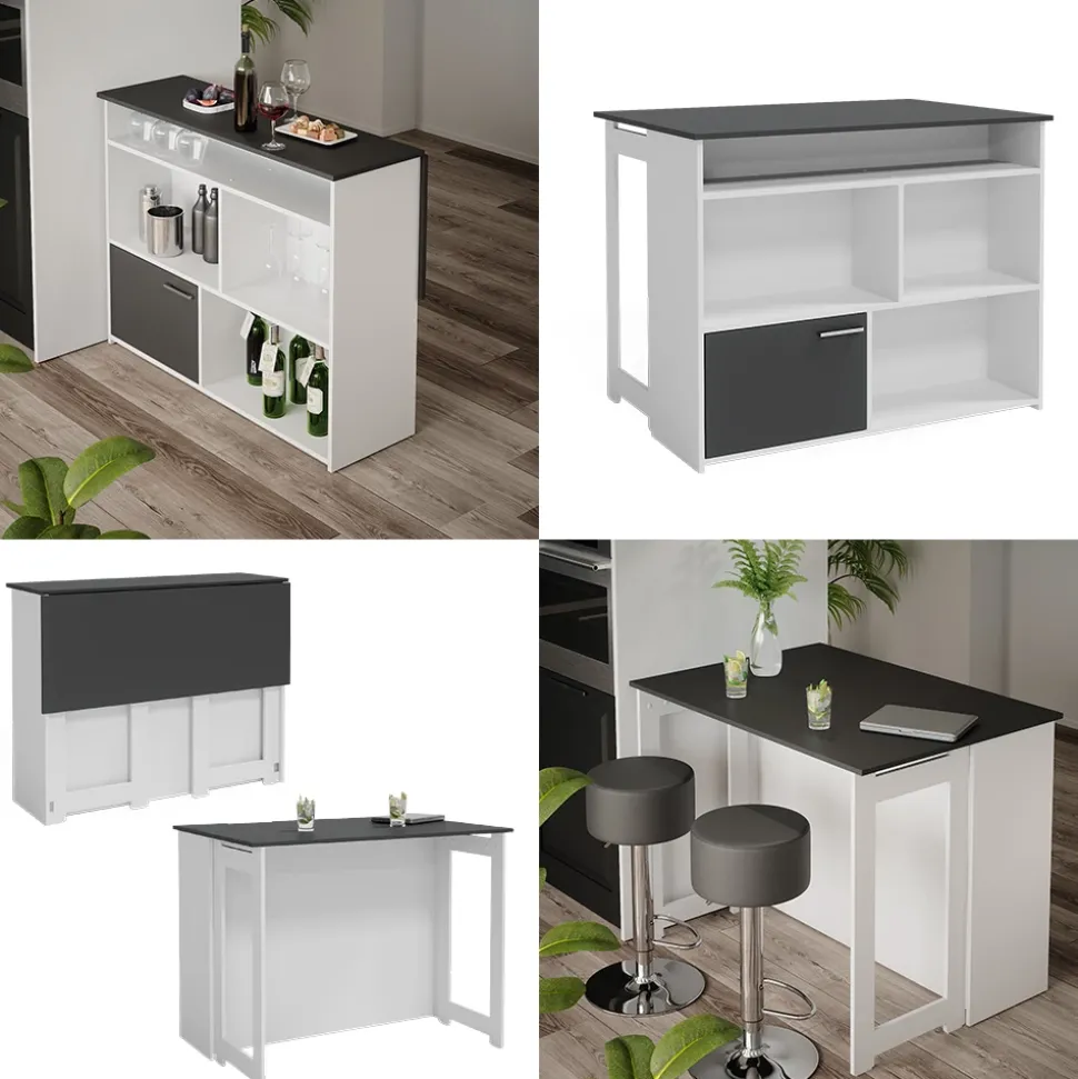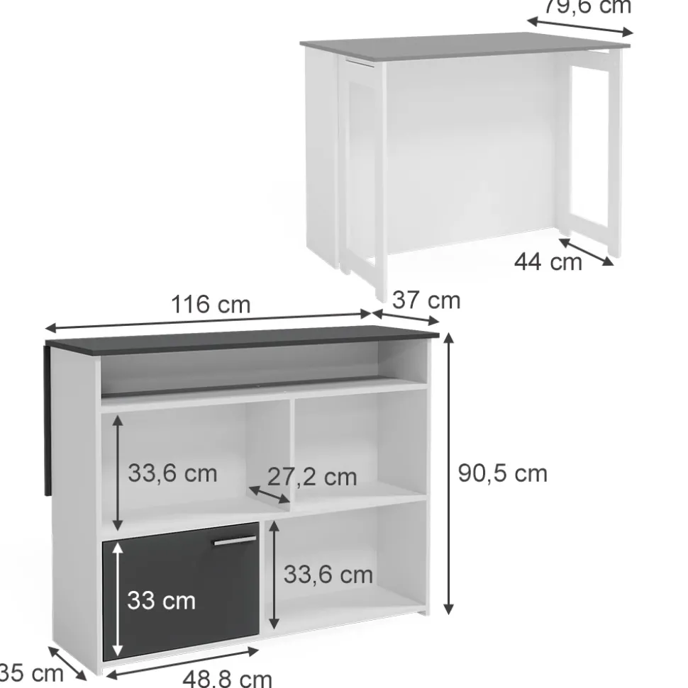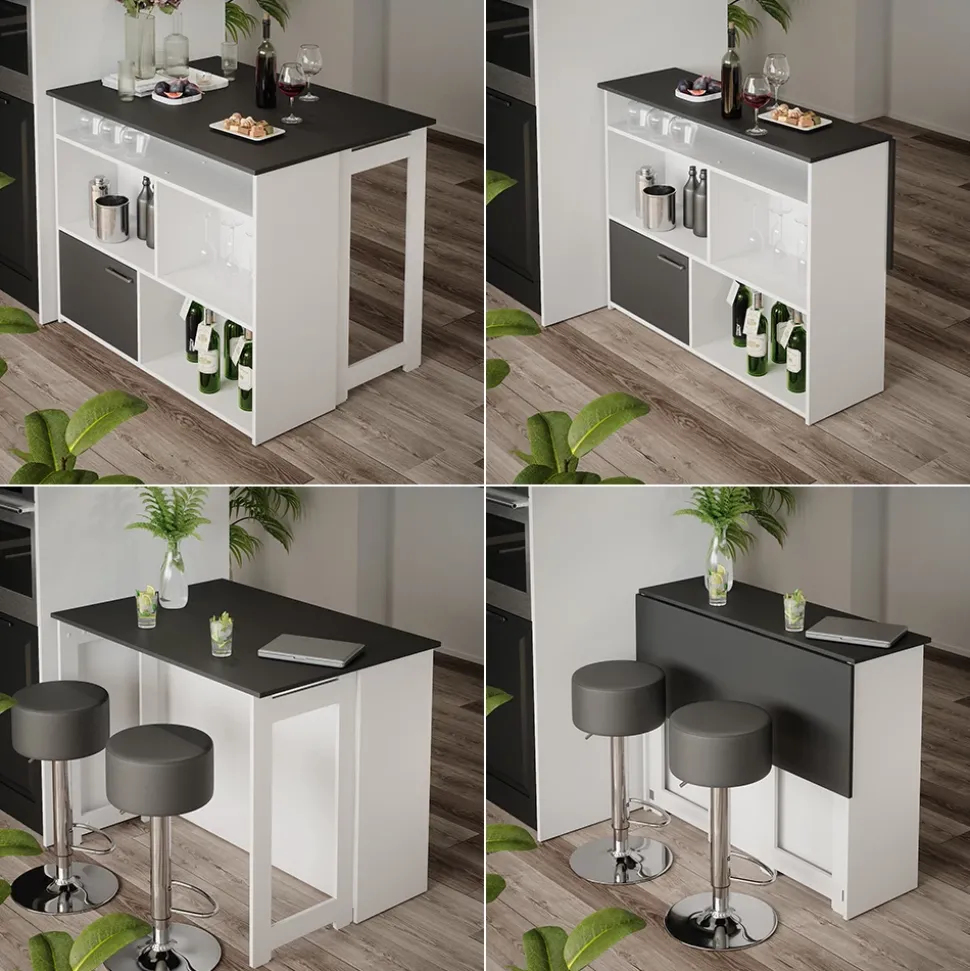 - Dieser Bartresen für das Esszimmer verfügt über 4 offene Fächer und 1 Tür, damit alles griffbereit ist. Die Tischplatte und das Beingestell sind gleichermaßen klappbar.