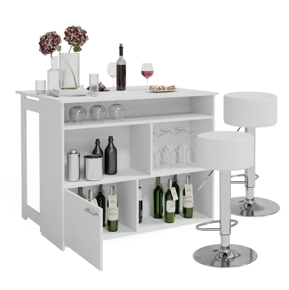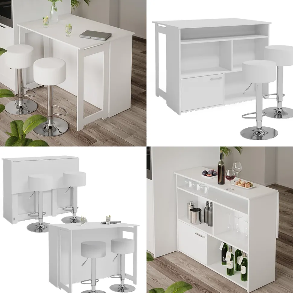 - Dieser Bartresen für das Esszimmer verfügt über 4 offene Einlegeböden und 1 Tür, damit alles griffbereit ist. Die klappbare Tischplatte und Beine sorgen für platzsparendes Verstauen.