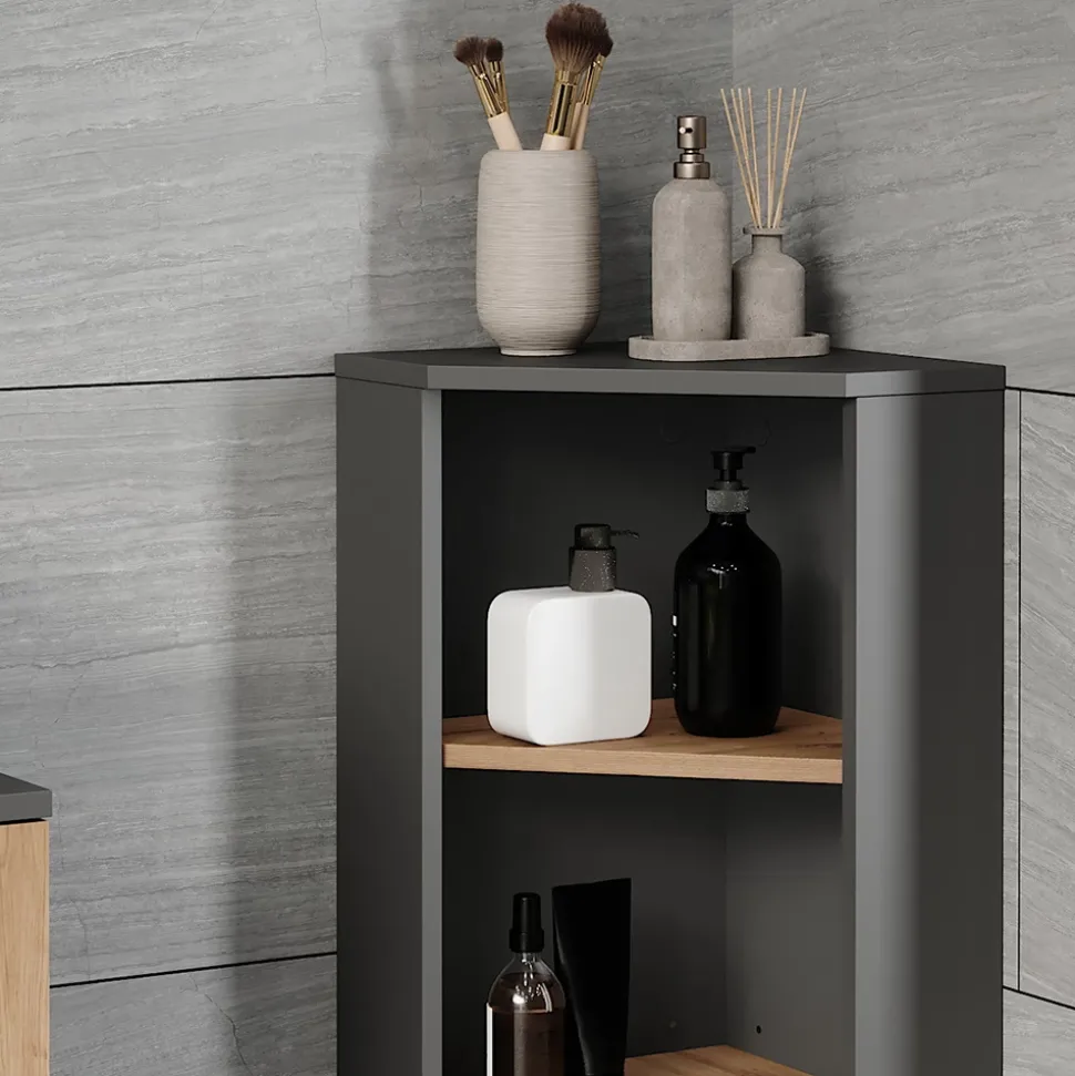 - LIEFERUMFANG: Eckmidischrank, Montageanleitung, Montagematerial (Dekoration nicht enthalten)