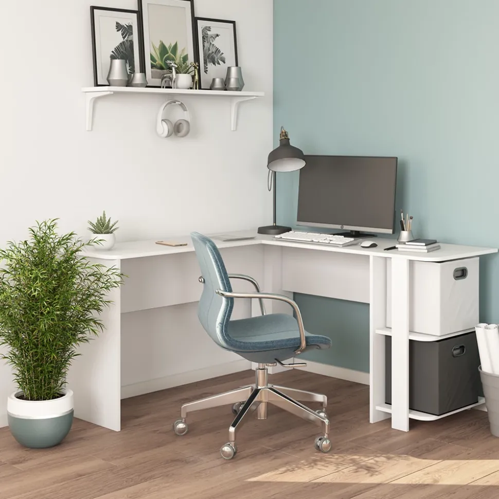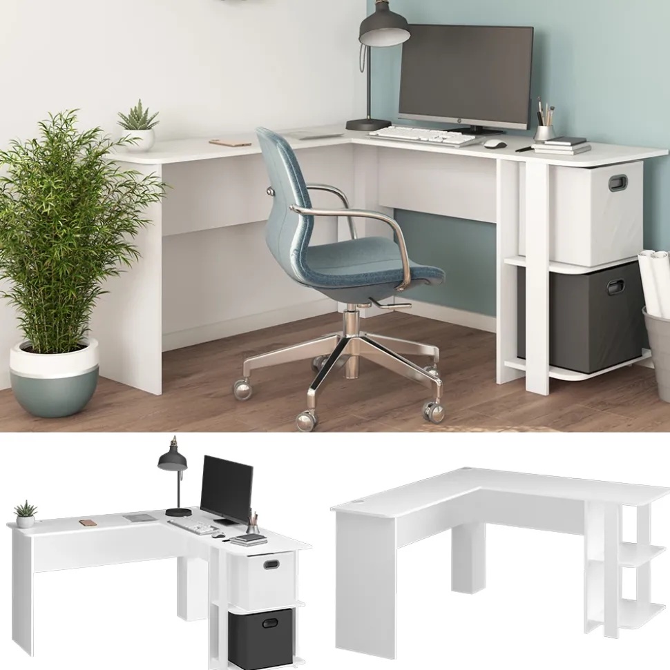 - Winkelschreibtisch bietet eine geräumige Arbeitsfläche, offene Regale und spart Platz.